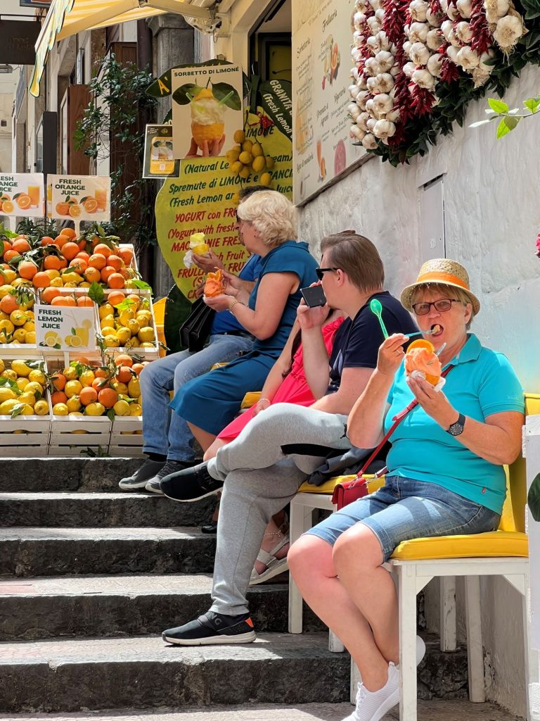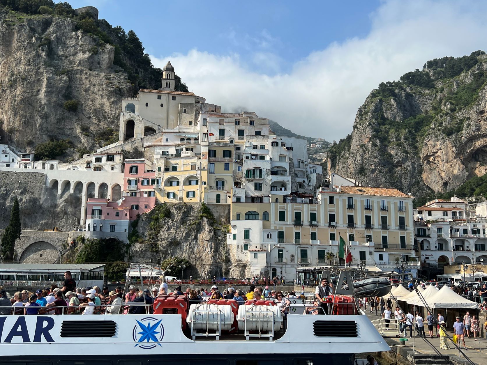 Die Fahrt dauert – ja nach Verkehr ca. 1 ½ Stunden. In Amalfi haben wir gut zu Mittag gegessen, die einzige Souvenir-Gasse angeschaut und dem regen Treiben auf der Hafenmole zugeschaut.