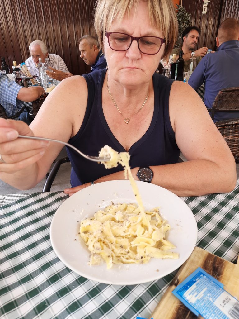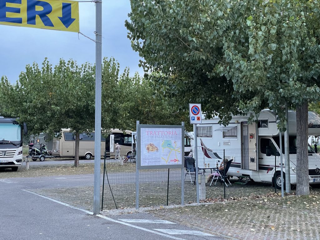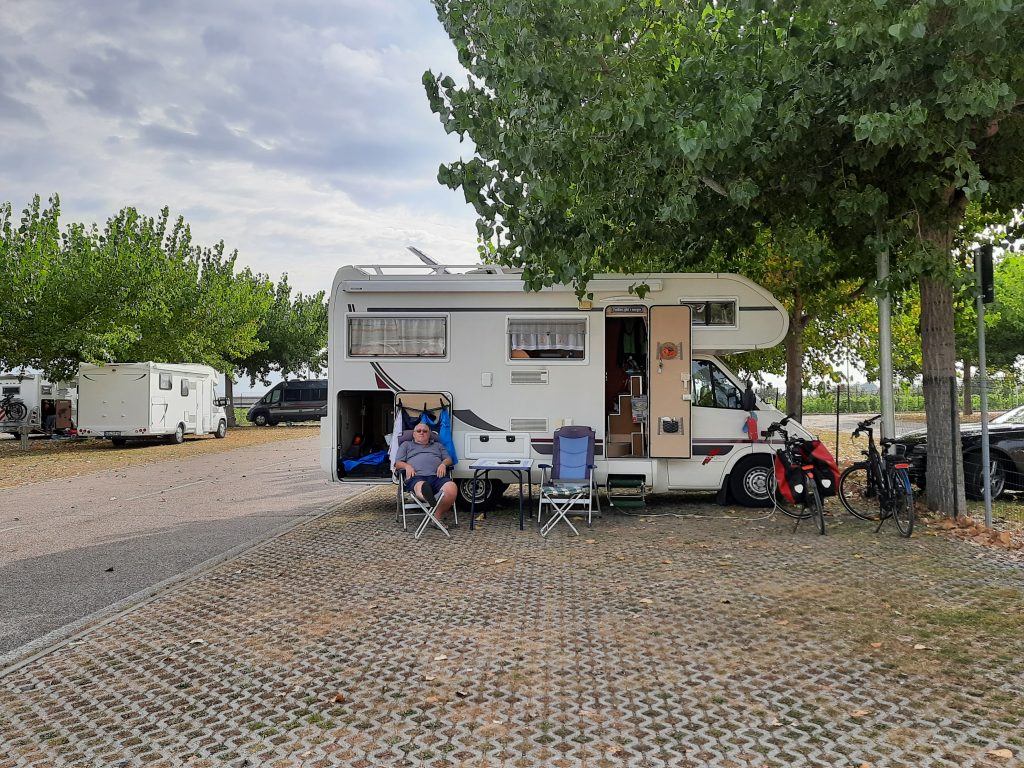 Aber leider ist kein Platz mehr frei – Alles belegt am Muncipale. Wir haben uns kurz mit Christa getroffen und sind dann weitergefahren. Wir stehen jetzt auf dem Stellplatz der Terme in Cola.