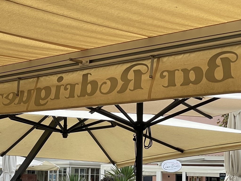Heute ist Markt in Lacona – aber wie bereits der Abendmarkt sind es nur eine Handvoll Stände. Der Himmel ist bewölkt und es sieht nach Regen aus. Wir machen noch einen Strandspaziergang und kehren in der Bar zum Frühschoppen ein. Gerade rechtzeitig um den ersten Regenschauer zu entgehen.