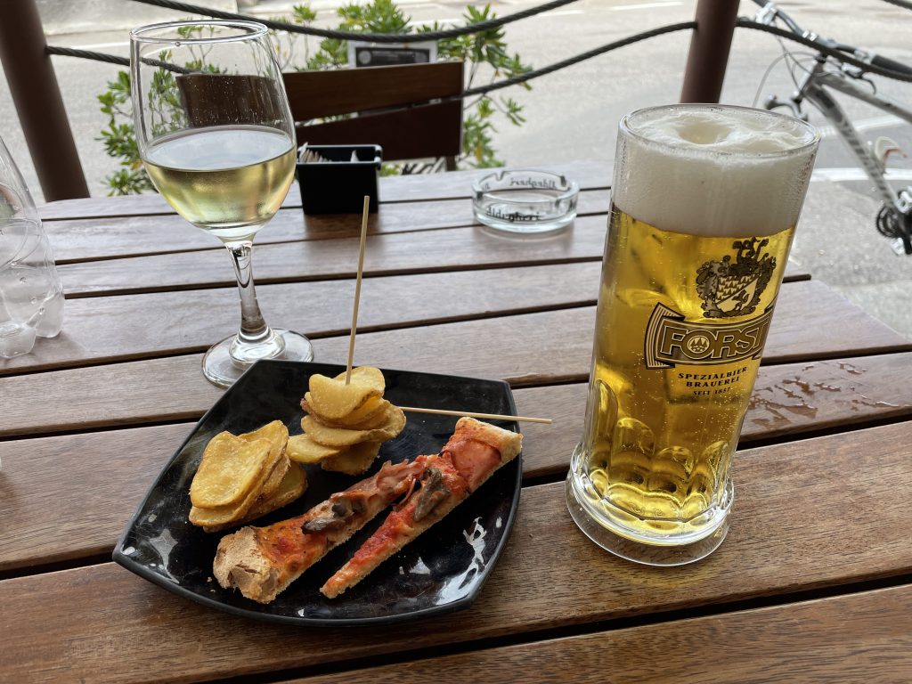 Heute ist Ruhetag. Wir sind zu Fuß nach Cola gegangen und machen einen kleinen Frühschoppen in der Bar „Pizza Planeta“