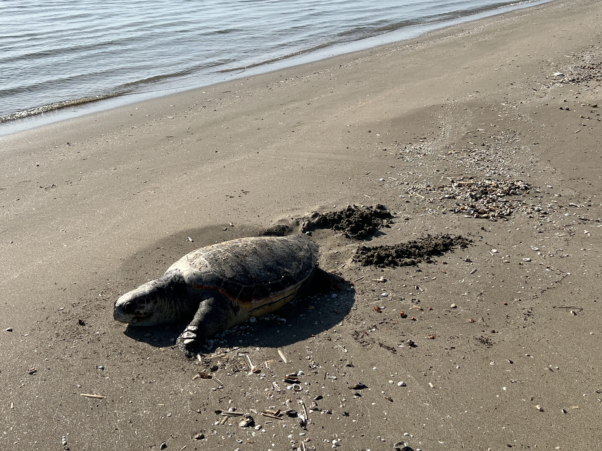 Bekonnen hat der Tag mit einen Strandspaziergang – 30 minuten in die eine Richung und dann wieder zurück. Es gab eine Überraschung – eine tote Schilkörte.
