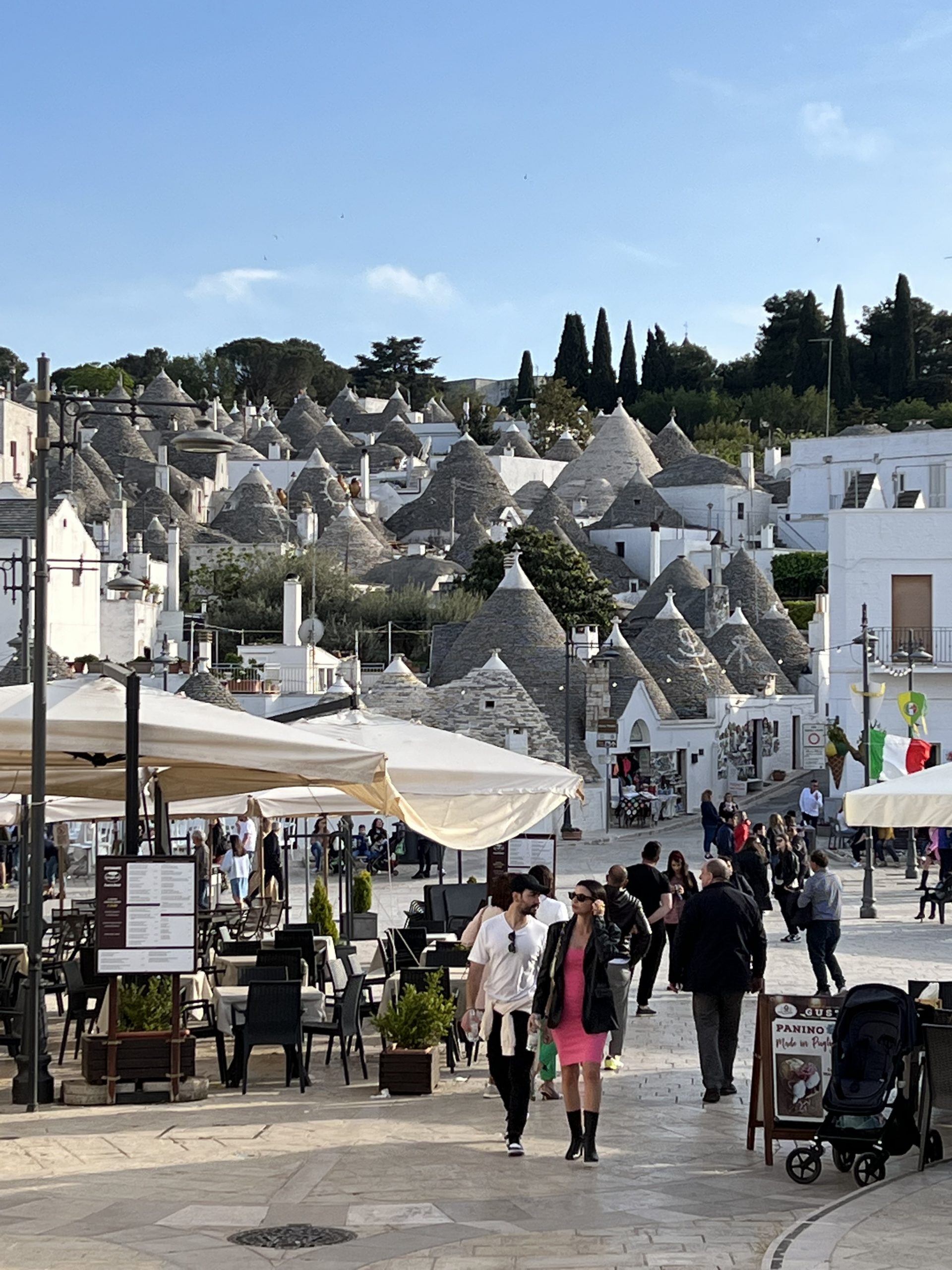 Am späten Nachmittag sind wir nach Alberobello gefahren – Hier war allerhand los. Durch die Trulli – Straßen sind viele Leute gewandert – Es gibt hier ein Souveniergeschäft und eine Bar neben der andern.