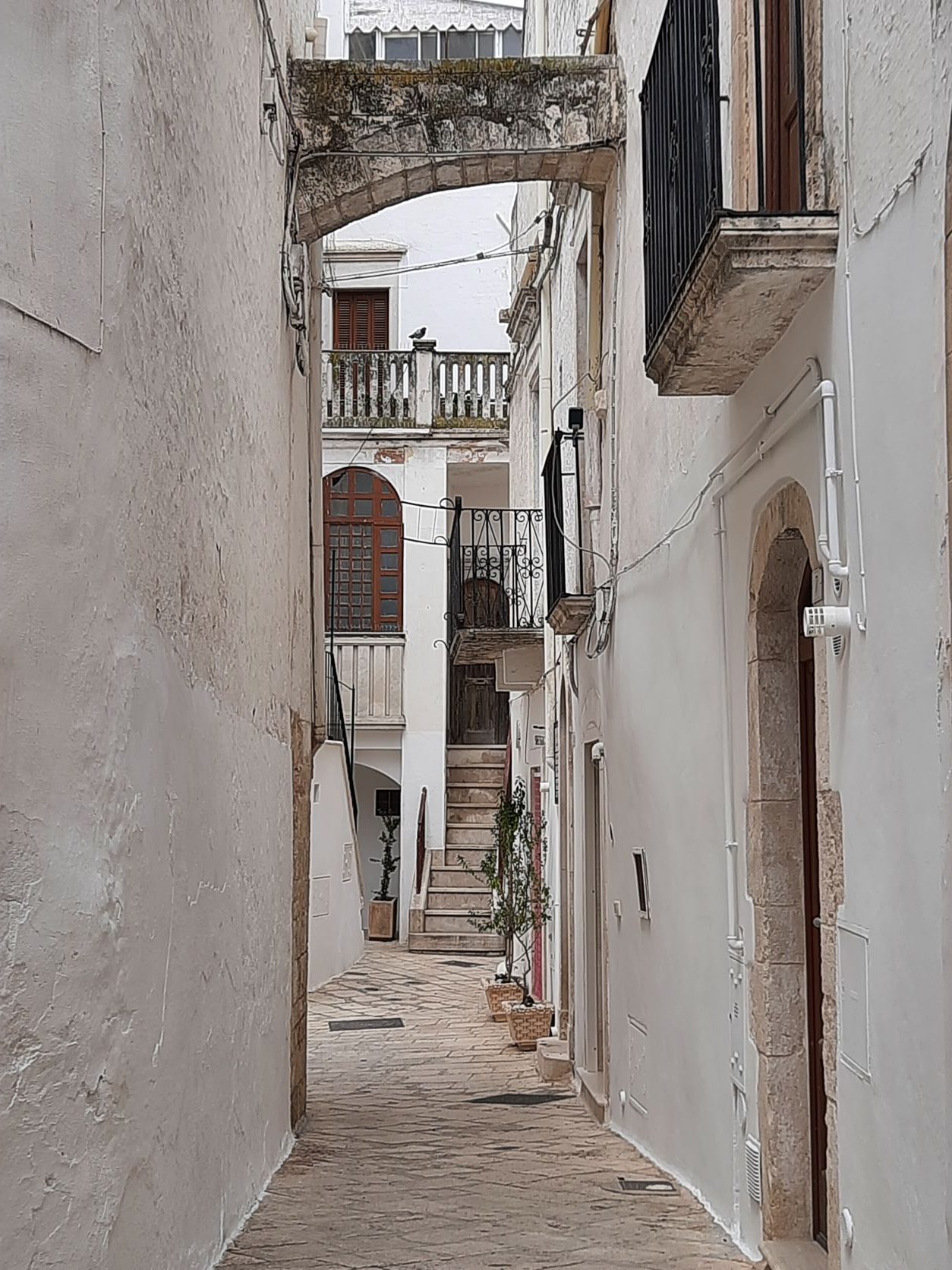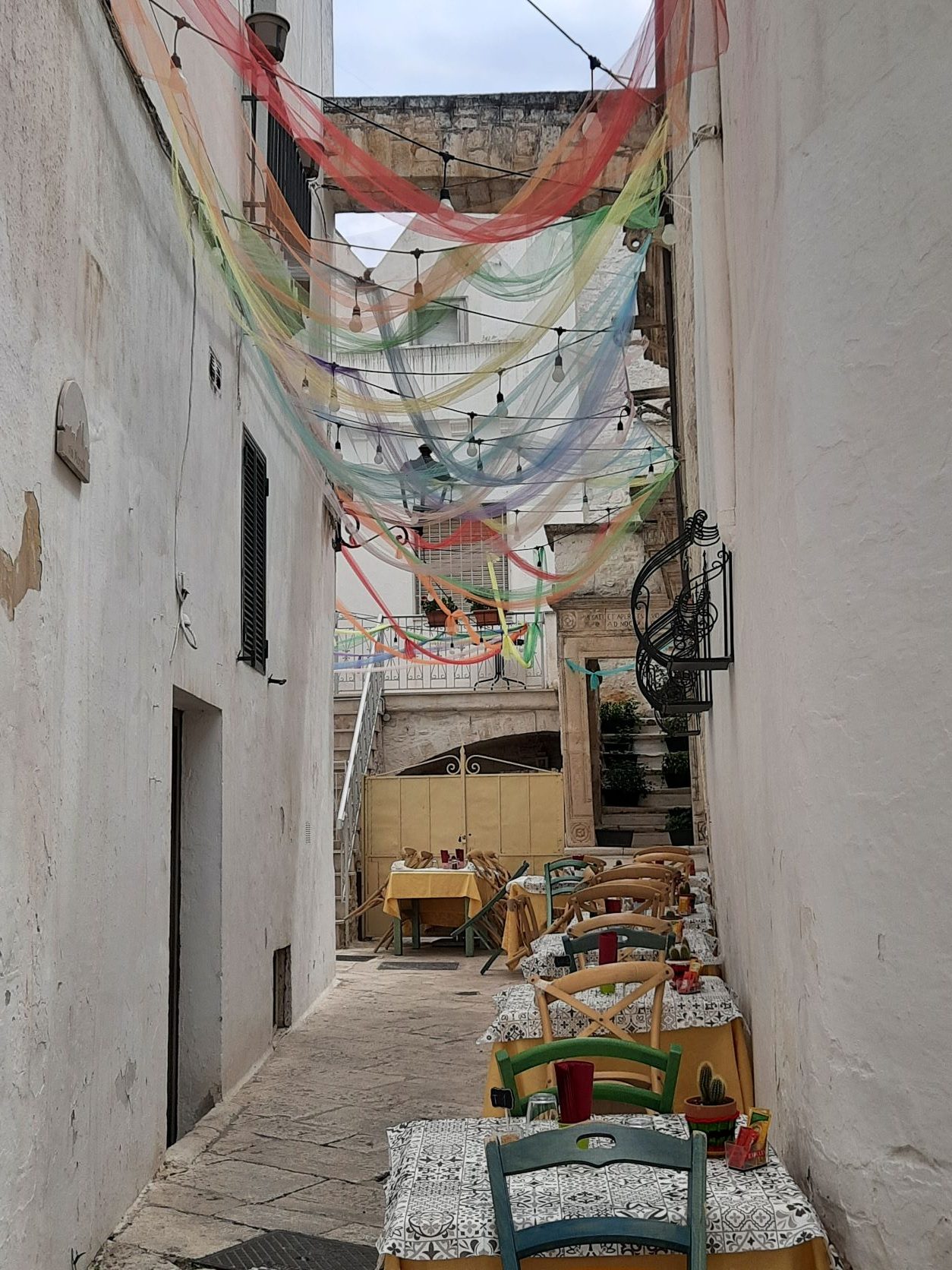 Weiter geht’s über einen Radweg!! ( in Italien ) – nach Martina – Franca. Auch hier ist die Altstadt wie ein Labyrinth verwinkelt. Wir finden doch eine kleine Bar bei der es einen Cappo und Aperol gibt und ein Gedeck mit Oliven, kleine Mozzarella, Chips und „Frolic“.