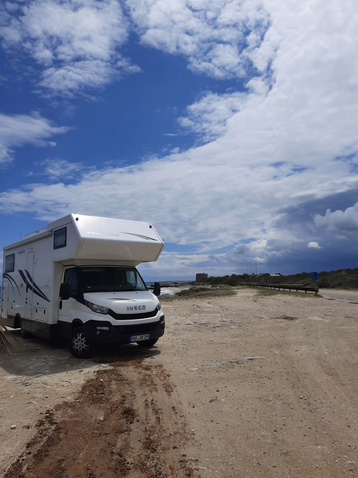 So wechseln wir auf die altbekannte SS16 Richtung Santa Maria di Lueca. Dort hat aber alles geschlossen. Alle Camping und Stellplätze sind noch zu. Bei einem Abstecher zu einem Agriturismo Platz holen wir uns noch ein Paar Kratzer – weil die Straße so eng geworden ist. Und der Platz auch noch geschlossen war. Wir schauen uns deswegen nicht mal Lueca an ( – das holen wir später mit einen Rollerausflug nach – sondern fahren weiter Richtung Gallipoli. Hier hat der erste CP den wir uns ausgesucht haben auch noch zu. Aber beim zweiten Platz dem „Glamping“ Torre Sabea haben wir glück. Und auch einen tollen Sonnenuntgergang – dirket vom dem CP
