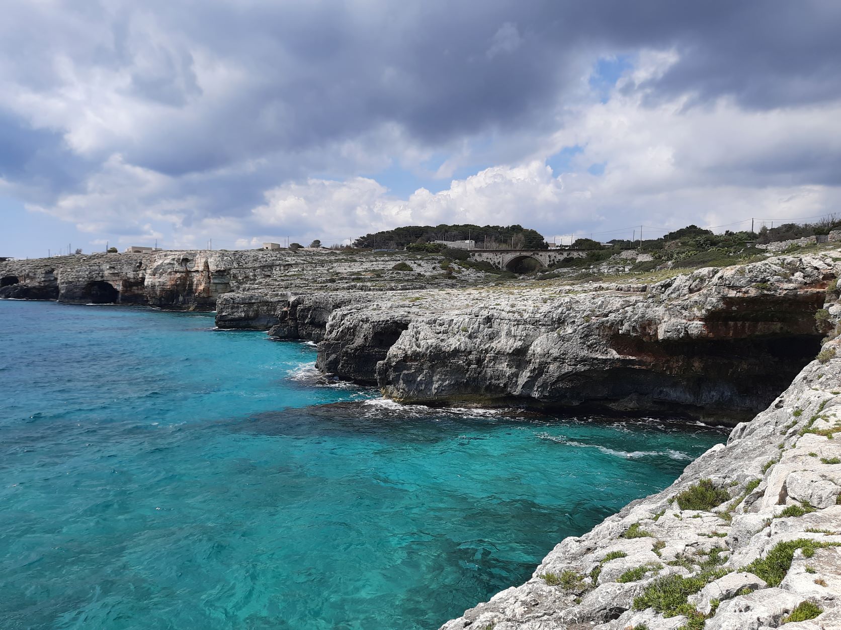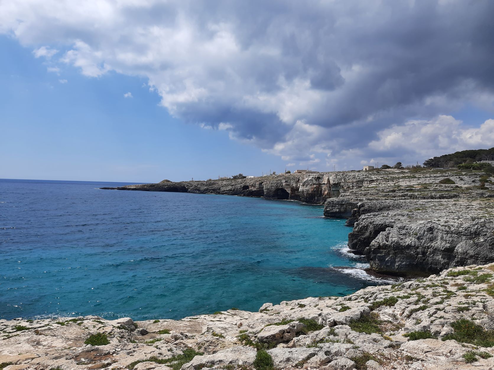 Heute geht’s wieder weiter. Wir verlassen das Trulli – Gebiet und umfahren Brindisi und dann Richtung Osten ans Meer. Dort fahren wir dann ein Stück weit nach Süden – Aber das ist halt eine arge Kurverei. Aber das Meer und die Klippen sind schon toll hier.