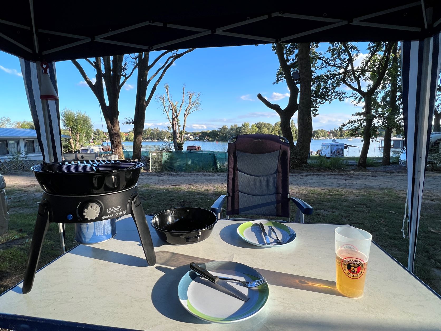 Wir haben einen tollen Platz mit Havelblick in der 1. Reihe.
