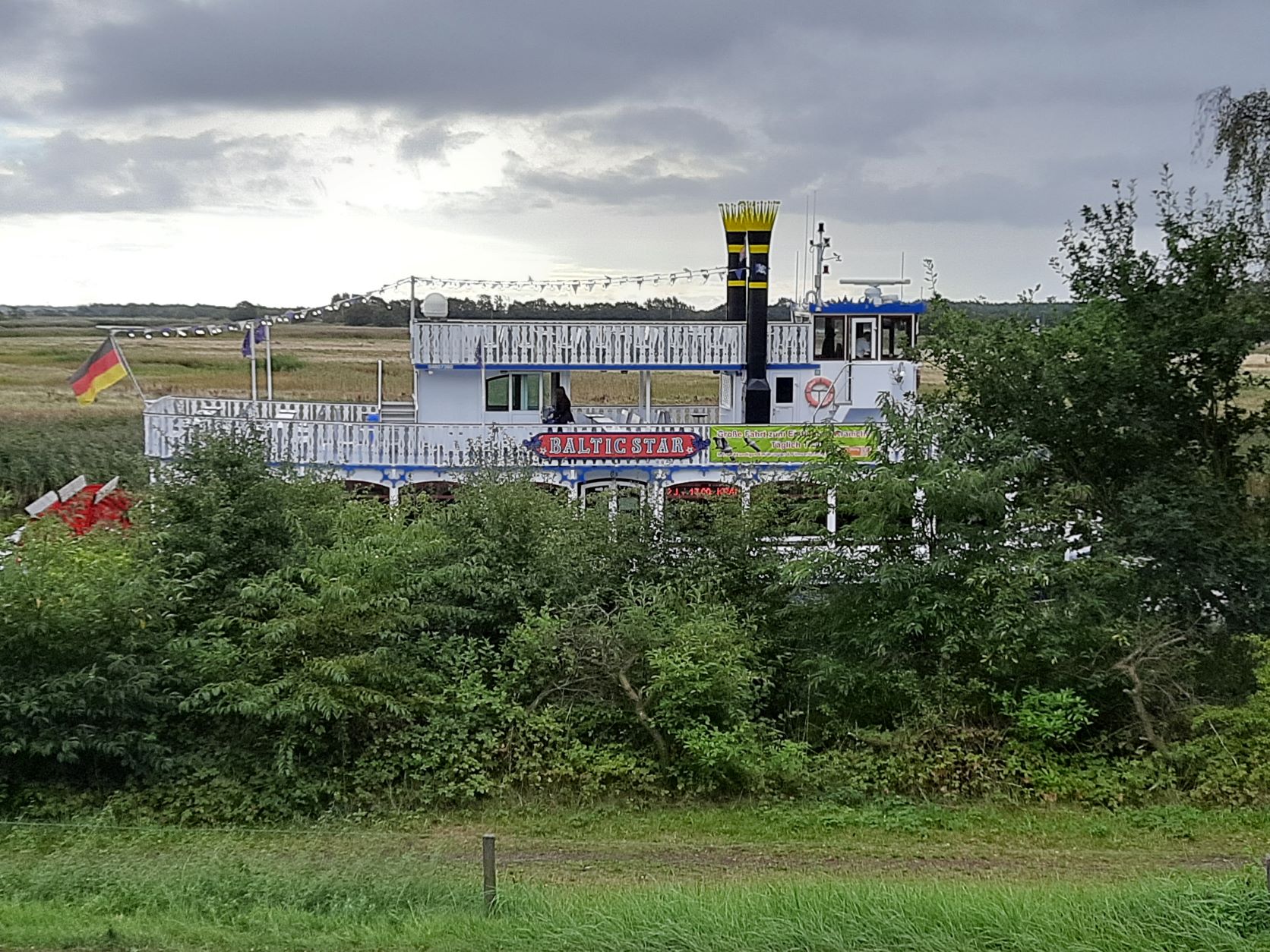 Bei Prerow sehen wir den Raddampfer der hier in den Wasserkanälen fährt.
