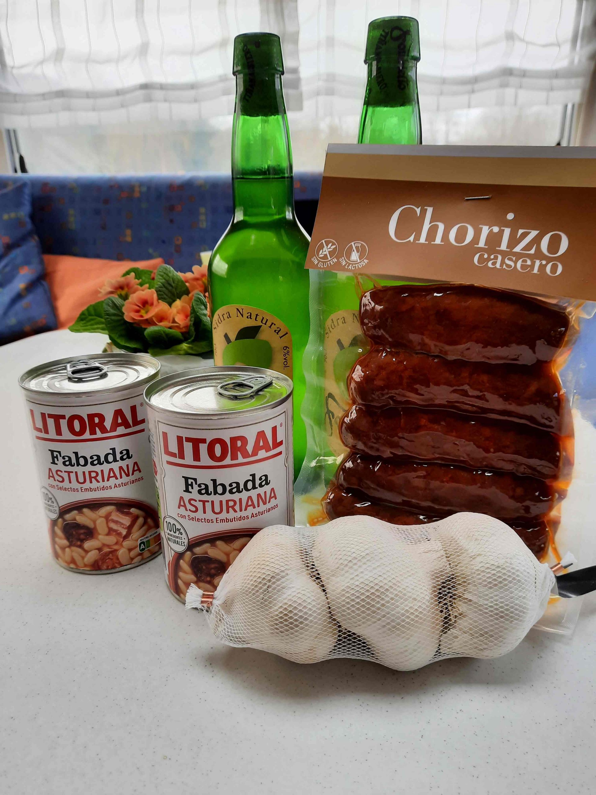 Nachdem wir auf den Kappelle hinaufgestiegen sind und von dort einen tollen Überblick über die Ortschaft und den Strand hatten sind wir noch in die Stadt selbt gefahren und haben uns an einem sonnigen Cafe einen „Cafe con Latte“ und ein „Cervesa“ gekauft. Was wir nicht wussten ist, dass hier im norden von Spanien auch ein Ciedre – Gebiet ist. Es gibt jede Menge verschiedener Sorten zu kaufen und auch die Spezialitäten – Bohnen mit 3 verschieden Fleisch- und Wurstsorten gibt es an jeder Ecke .