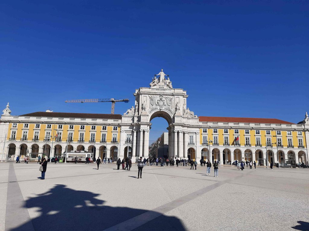 Anschließend sind wir zum „Praca do Comerzio“ marschiert und haben durch den Torbogen der „Arco da Rua Augusto“ fotografiert. Hier ist die Fußgängerzone der Baixa und schon viel los.