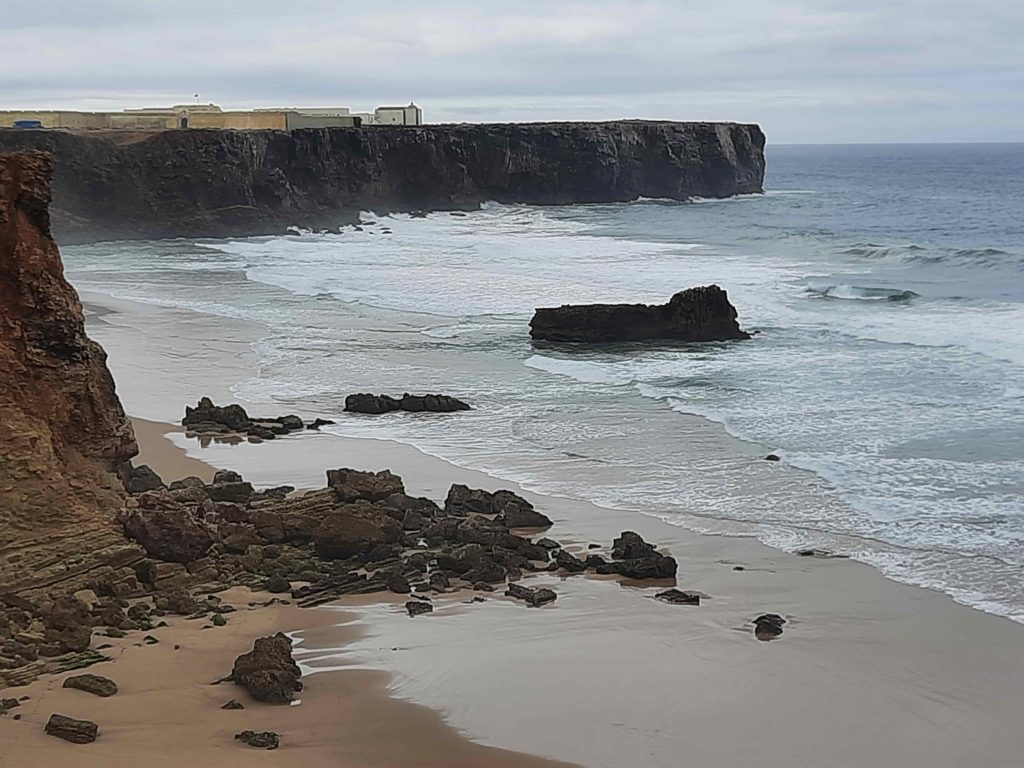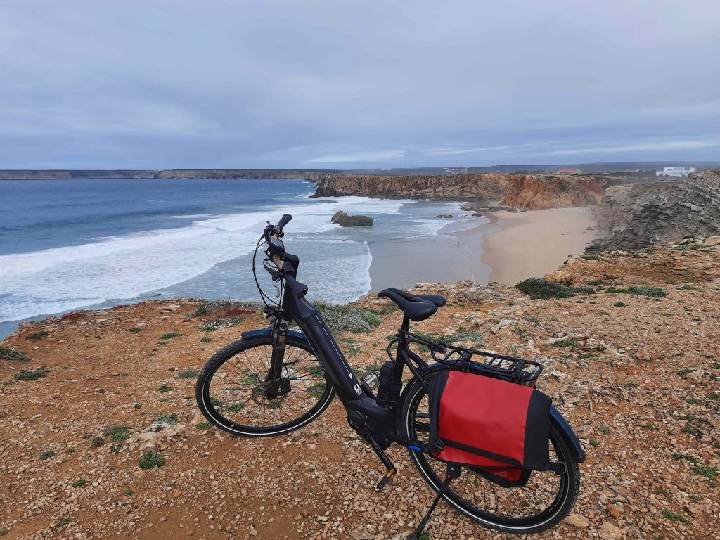 Gegen 10:00 Uhr fahren wir mit den Rädern nach Sagres. Zurest zu Festung. Vor der Festung gibt es einen großen Parkplatz der mit den Campingbussen der Surfer die hier Übernachten gefüllt ist. Auch kann man wieder zu 2 Stränden über kleine Wege hinuntergehen.
