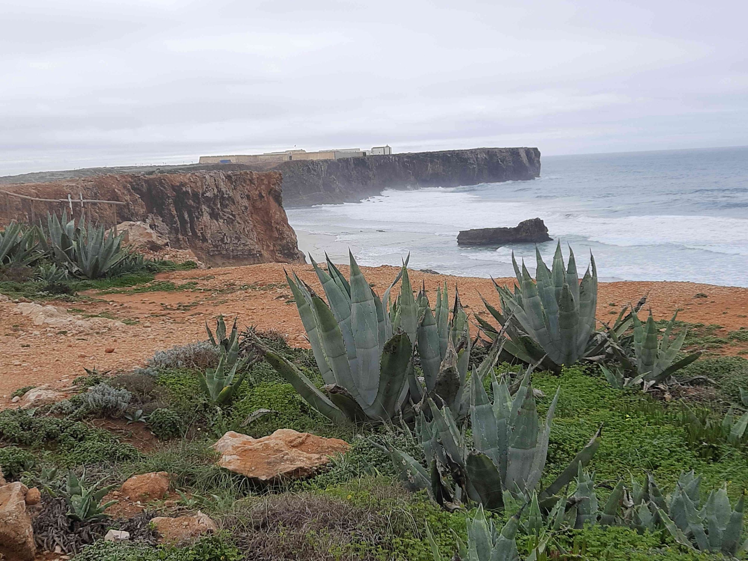 Gegen 10:00 Uhr fahren wir mit den Rädern nach Sagres. Zurest zu Festung. Vor der Festung gibt es einen großen Parkplatz der mit den Campingbussen der Surfer die hier Übernachten gefüllt ist. Auch kann man wieder zu 2 Stränden über kleine Wege hinuntergehen.