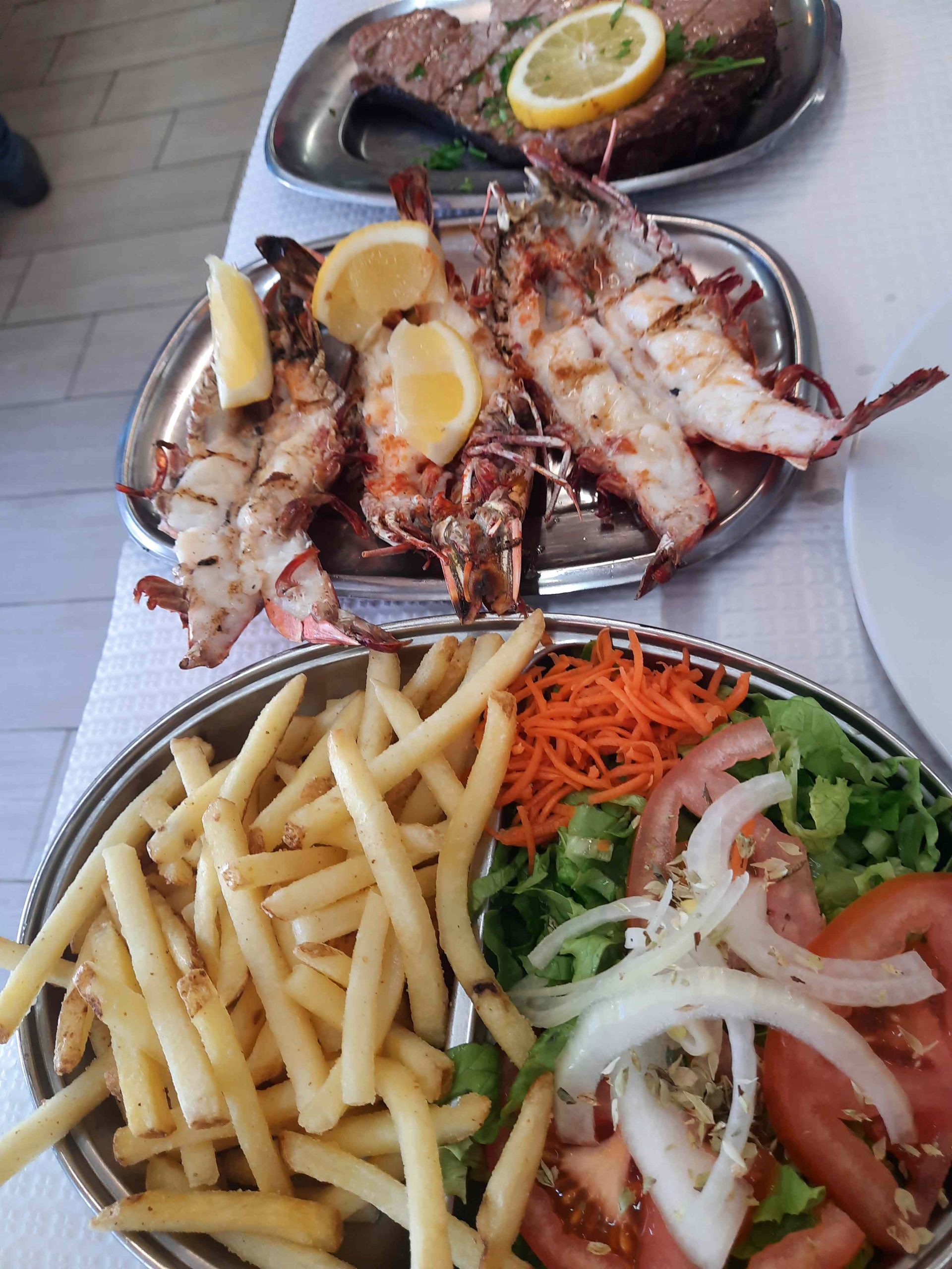 Die Gaststätte ist stark frequentiert aber es gibt einen straffen Plan. Man muss sich anmelden und wird dann – nach mehr oder weniger langer Wartezeit – aufgerufen. Dann geht alles sehr zügig. Getränke bestellen und dann an die Fischtheke. Wer ein Wiener-Schnitzel hier will ist fehl am Platz. Hier gibts nur Fisch, Muscheln etc. Aber die frischesten die man sich vorstellen kann.