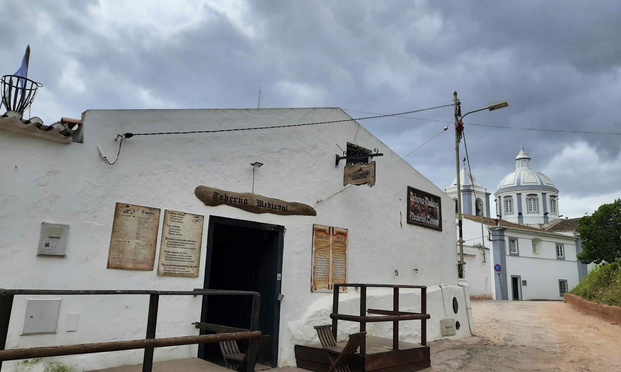 Da die Burg erst um 14:00 wieder öffnet machen wir noch eine kleine Einkehr in der Taverne „Taberna Medievali“ – Sehr Mittelalterlich – aber es gab Cidre und Corrizo, Schinken, Käse mit Melone und Trauben – sehr lecker. Und so wie es in der Burg ausschaut gibt es hier auch Mittelalter – Feste mit allem was dazugehört.