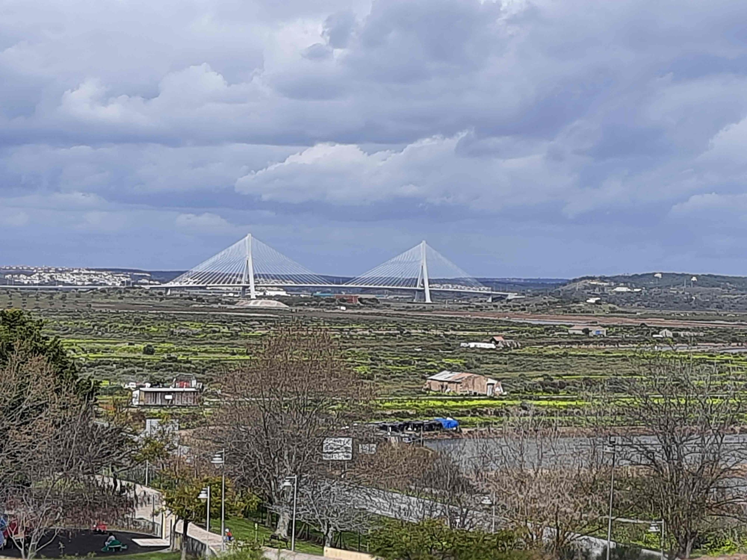 Nach Castro Marim sind es ca. 8 km. Es geht vorbei an Lidl und Aldi und dann quer durch die Salzgewinnungs – Becken nach Castro Marim. Bei der Anfahrt sieht man nur die alte Festung. Erst als wir zur Festung fahren sieht man die eigentliche Stadt und auch die Burg mit dem Schloß . Vom Weg auf der Schloßmauer sieht man auch sehr schön die Autobahnbrücke die Portugal mit Spanien verbindet.
