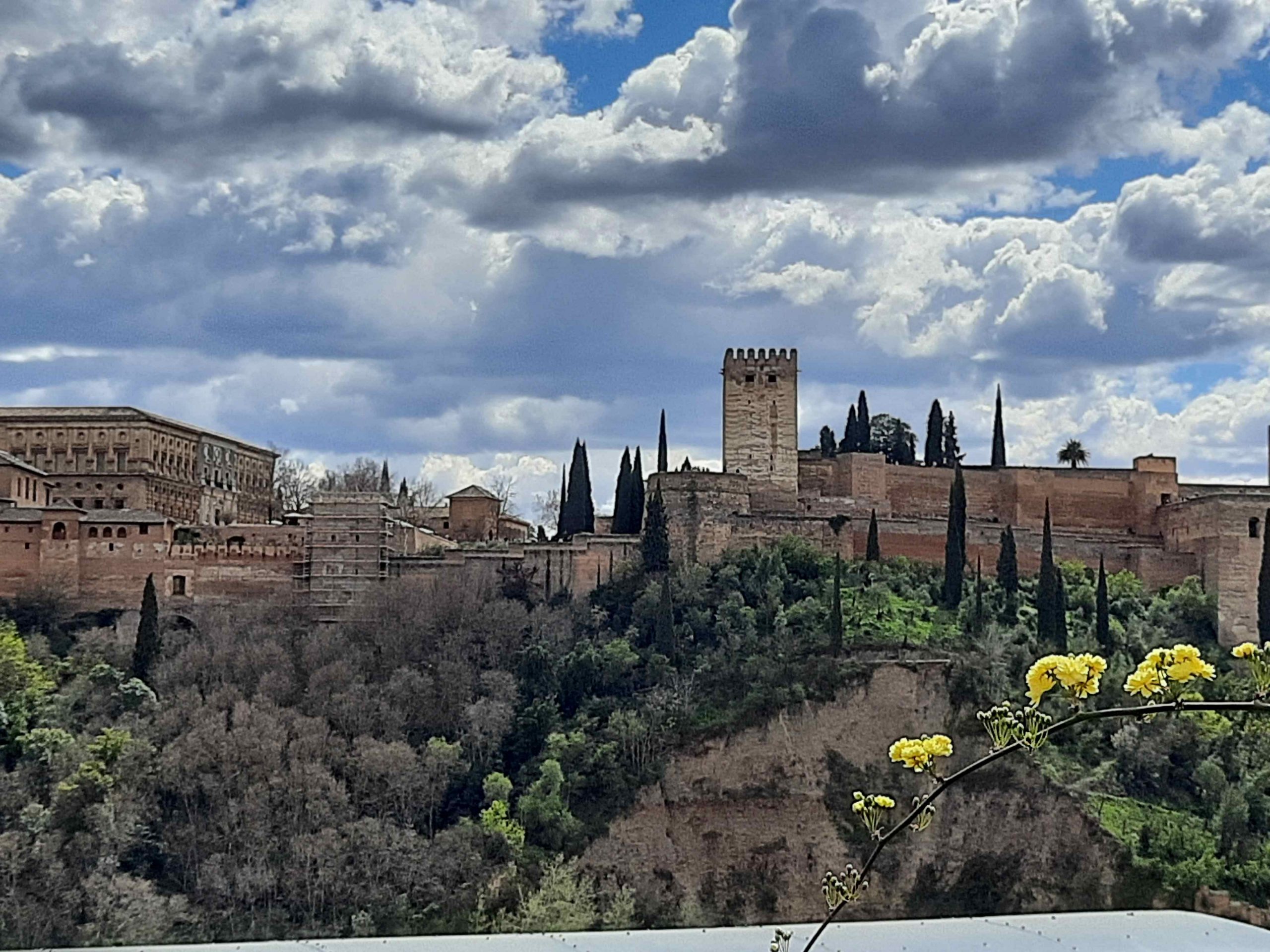 Wir fahren mit dem Symerl auf der N-232 Richtung Granada. In einer der kleinen Vorstädte kommen wir etwas vom Weg ab und landen in einer Einbahn- und Ich-darf-nicht-Abbiegen – Gegend. Aber wir finden den Weg aus diesem Labyrint und steuern geradewegs auf die Alhambra zu. Wir parken den Symerl und machen uns dann zu Fuß weiter auf den Weg.