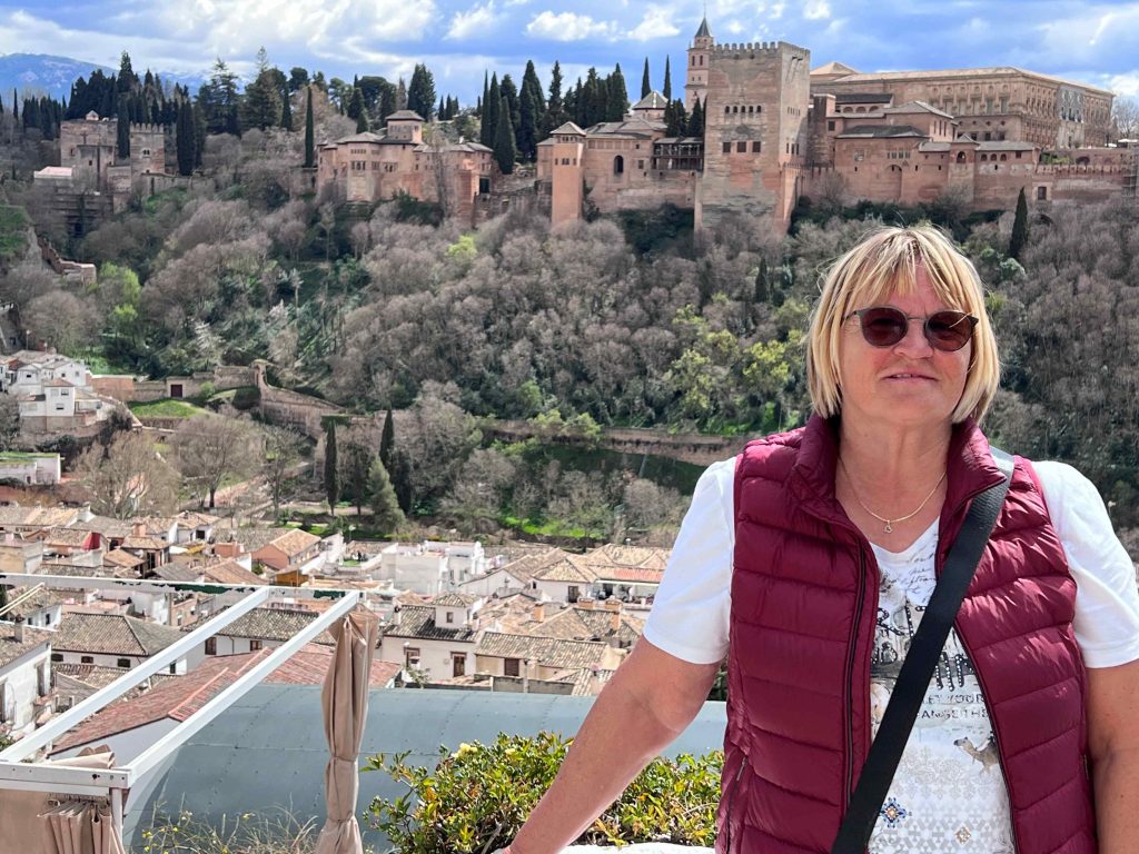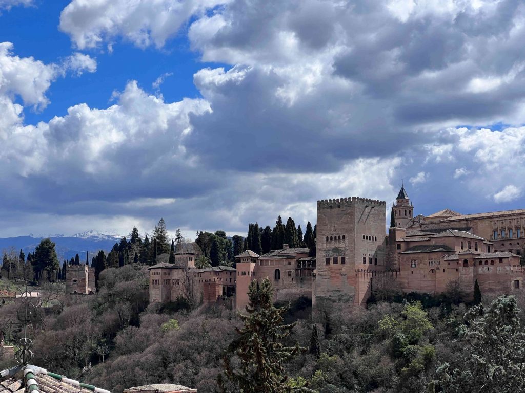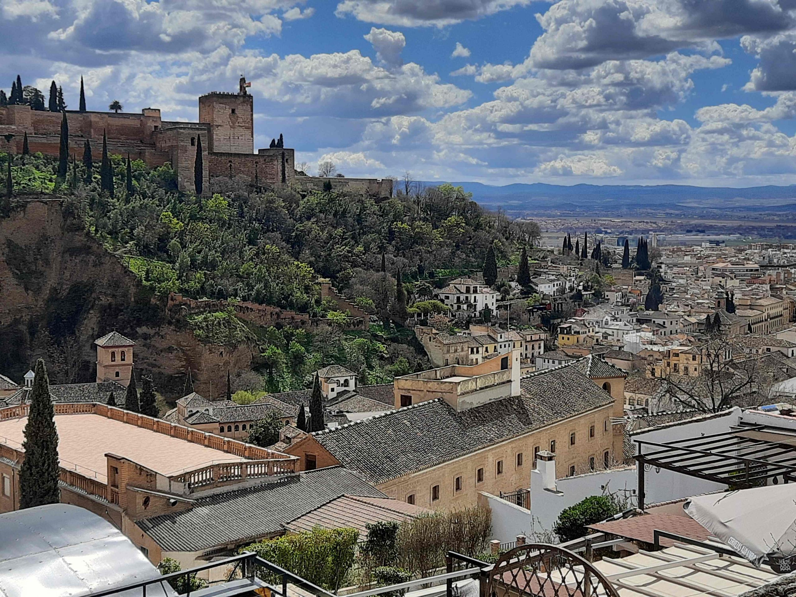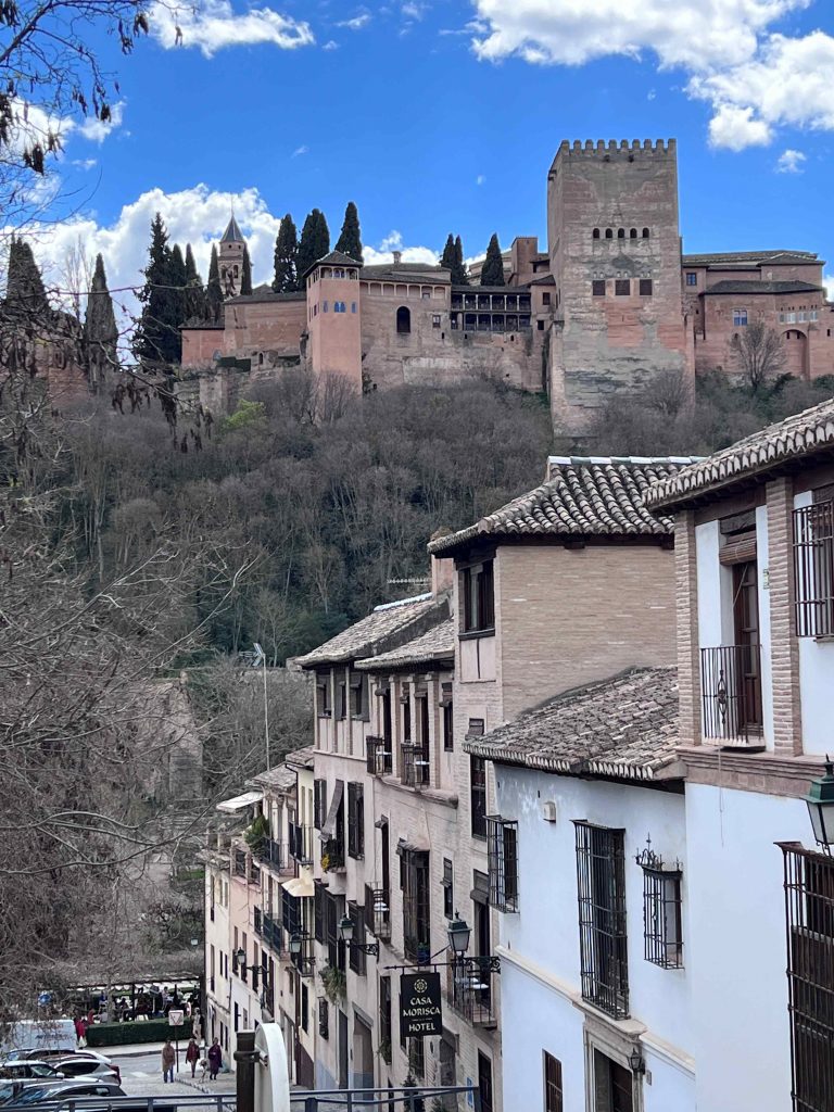 Wir steigen die steilen Treppen gegenüber der Alhambra hinauf und haben ganz oben dann einen tollen Blick darauf.