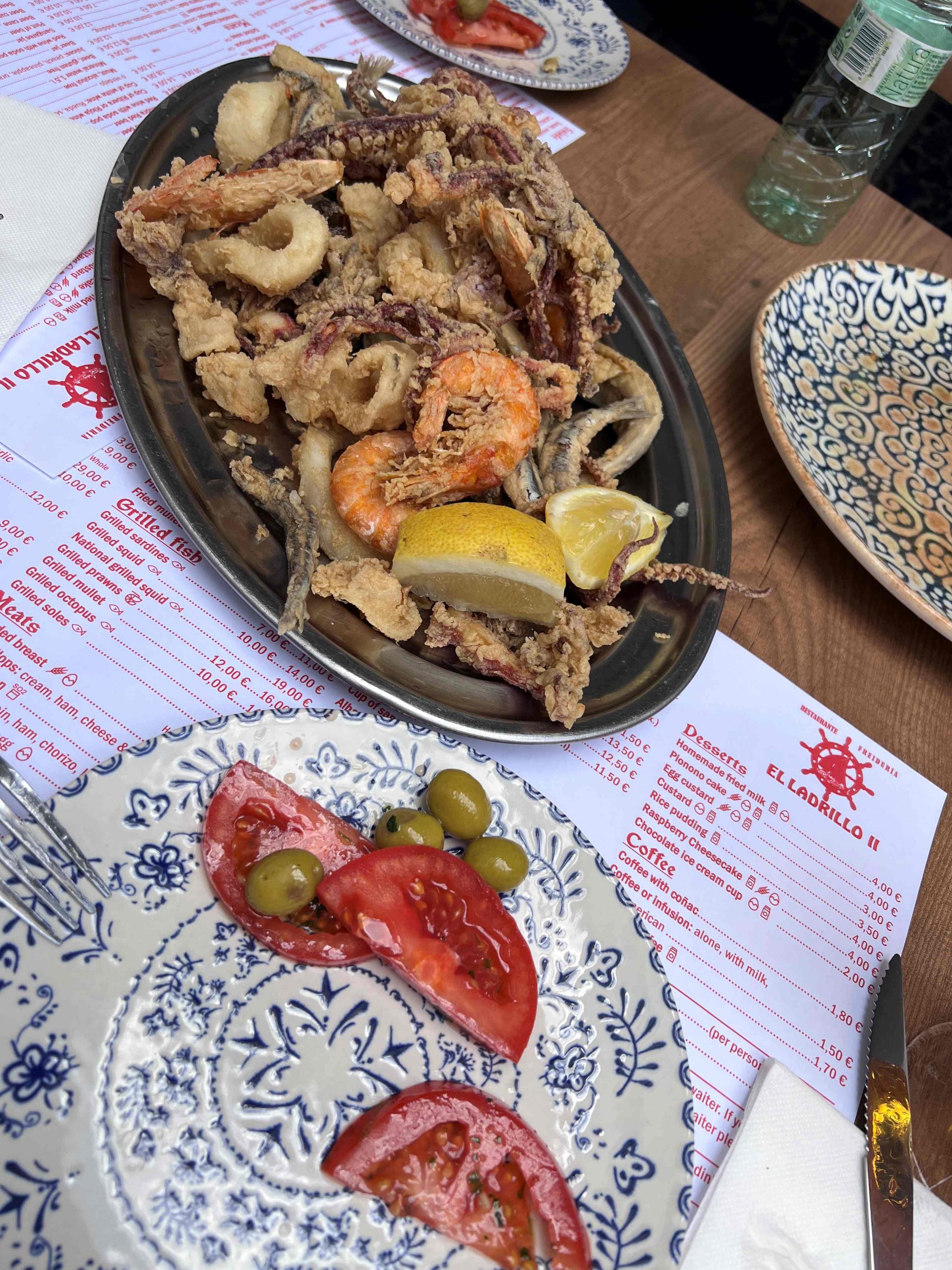 Aber nicht nur einen tollen Ausblick auf die Alhambra hat man hier auch gibt es hier eine vielzahl von Bars und Restaurants. Wir haben ( gottseidank ) bei 2 eine Absage erhalten – und sind so im Restaurant „Ladrillo II“ gelandet. Zuerst in den 2. Stock geschickt – war aber nix mehr frei – dann – 5 Minuten Wartezeit – überbrückt mit einen Wasser, einem kleinen Bier und einem kleinen Teller Pealla – und dann gabs einen Tisch. Wir haben sehr gut gespeist – sogar mit etwas Live – Musik.