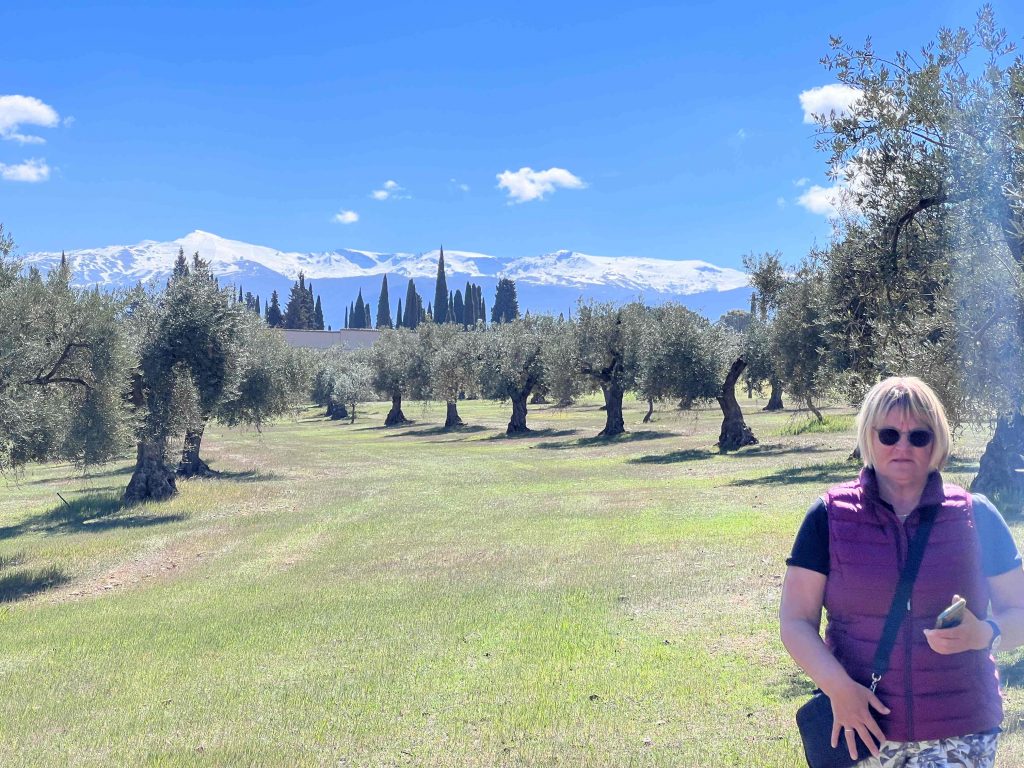 Aber wie bereits befürchtet gibt es keine Karten mehr zu kaufen. Nach einem Caffee con leche gehten wir noch durch die Olivenhaine und haben einen tollen Blick auf die Berge der Sierra.
