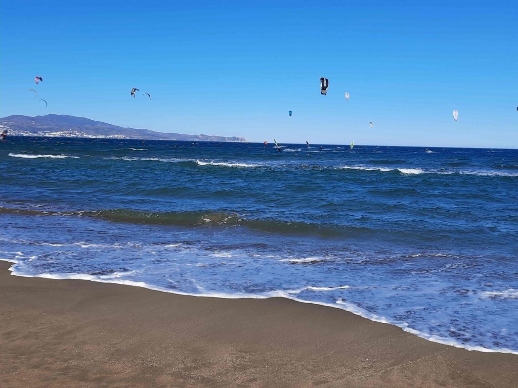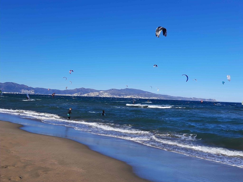 Heute ist der Wind nicht mehr ganz so stark wie gestern und wir machen uns mit dem Symerl auf nach Roses. Es sind mehr als 20 km – obwohl es vom Strand aus gar nicht so weit ausschaut.