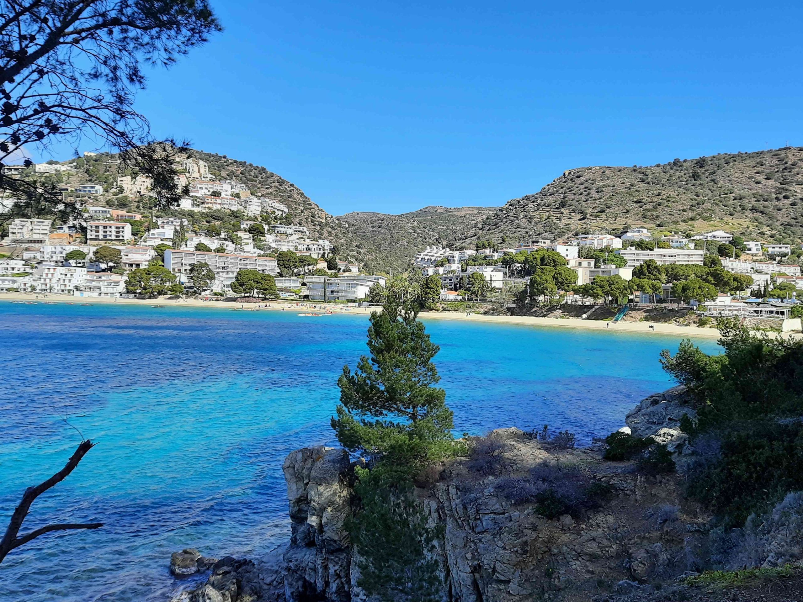 Heute ist der Wind nicht mehr ganz so stark wie gestern und wir machen uns mit dem Symerl auf nach Roses. Es sind mehr als 20 km – obwohl es vom Strand aus gar nicht so weit ausschaut.