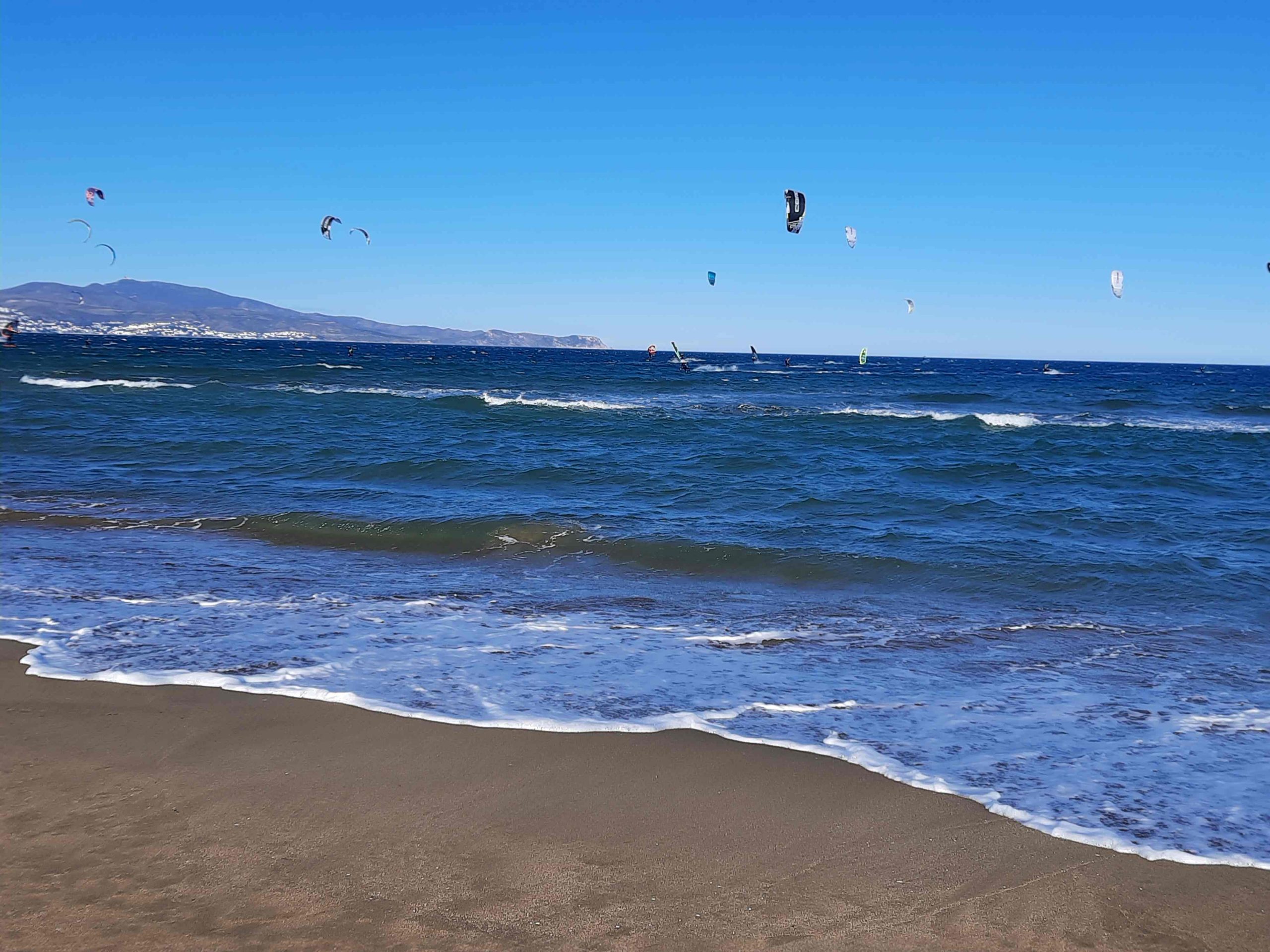 Nach der Rückkehr am CP gehen wir noch in die Bar am Strand. Heute sind im gegensatz zu gestern massig Kiter unterwegs. Bei einen Desperado und einem Mochioto schauen wie uns das gewusle an