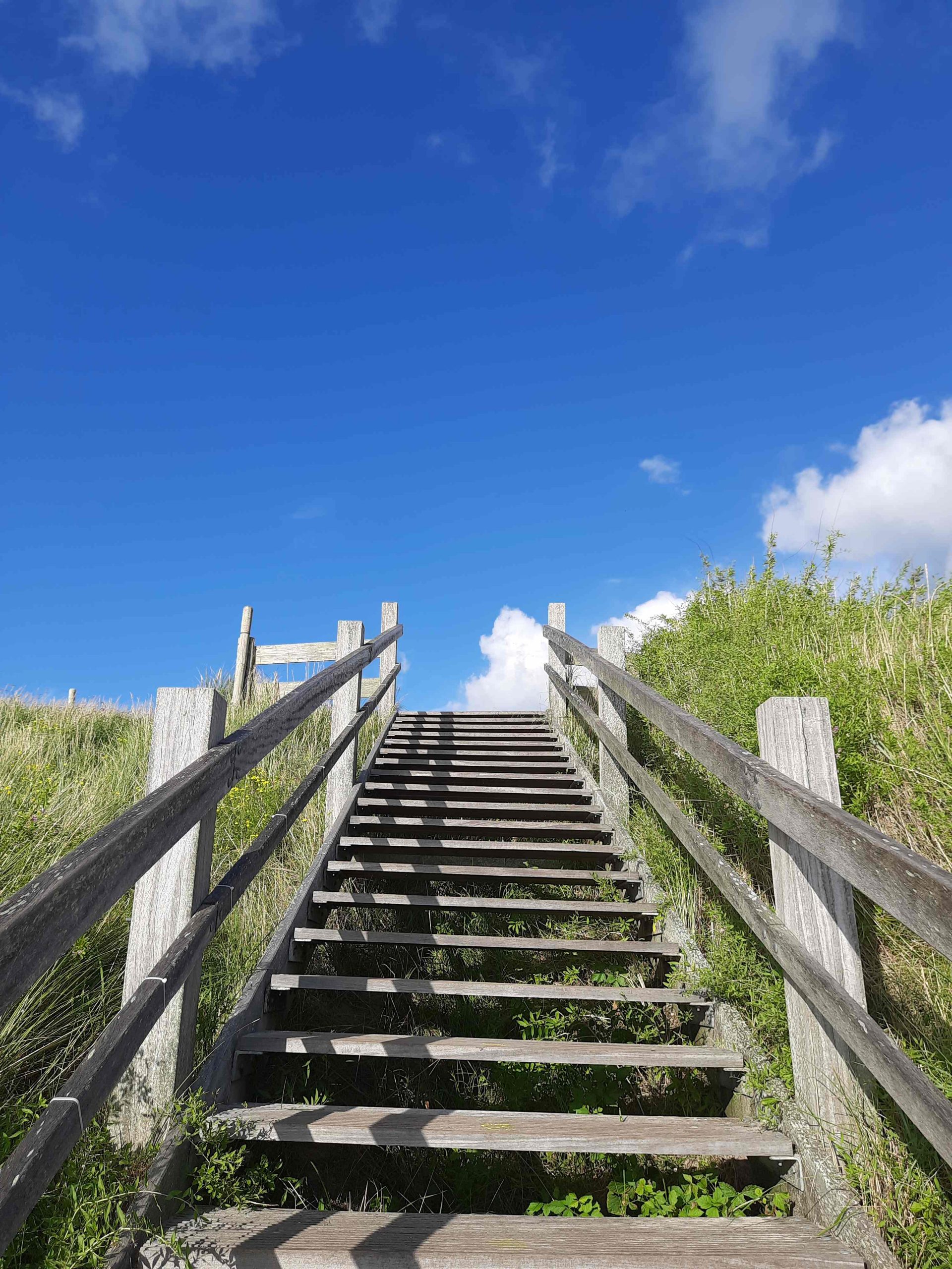Wir haben dann auch noch das Meer gesucht. Es versteckt sich hinter einer Sanddüne. 100 Treppen auf der einen Seite rauf und auf der anderen wieder runter – das ist Strandcamping!