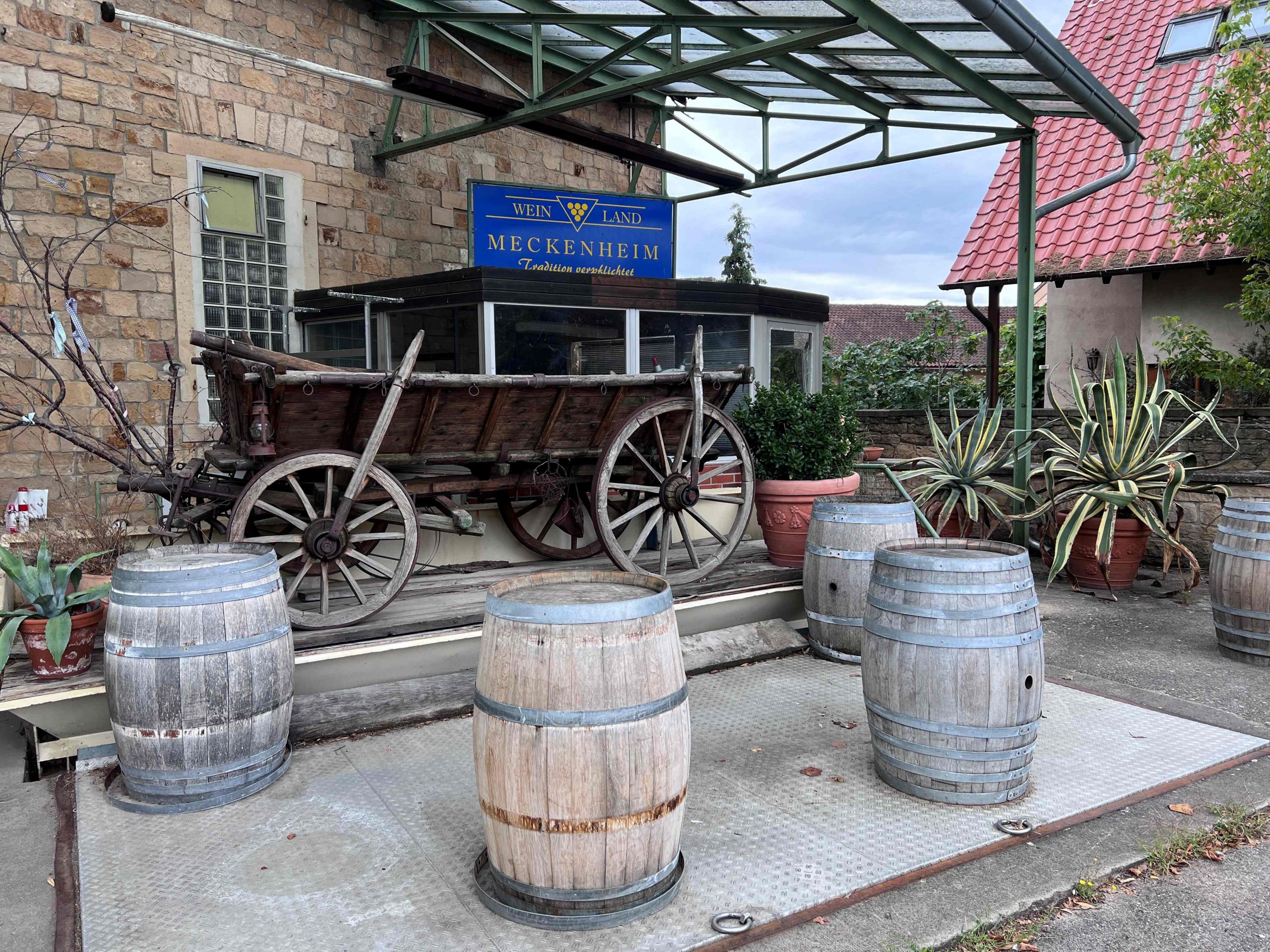 Wir fahren weiter. Ziel ist der Ort Mußbach ein Ortsteil von Neustadt a.d.W. Dort stehen wird beim Winzerkeller Meckenheim direkt an der Schoppenwiese. Der Grill mit den Weinreben ist schon angeheizt. Es gibt Spießbraten.