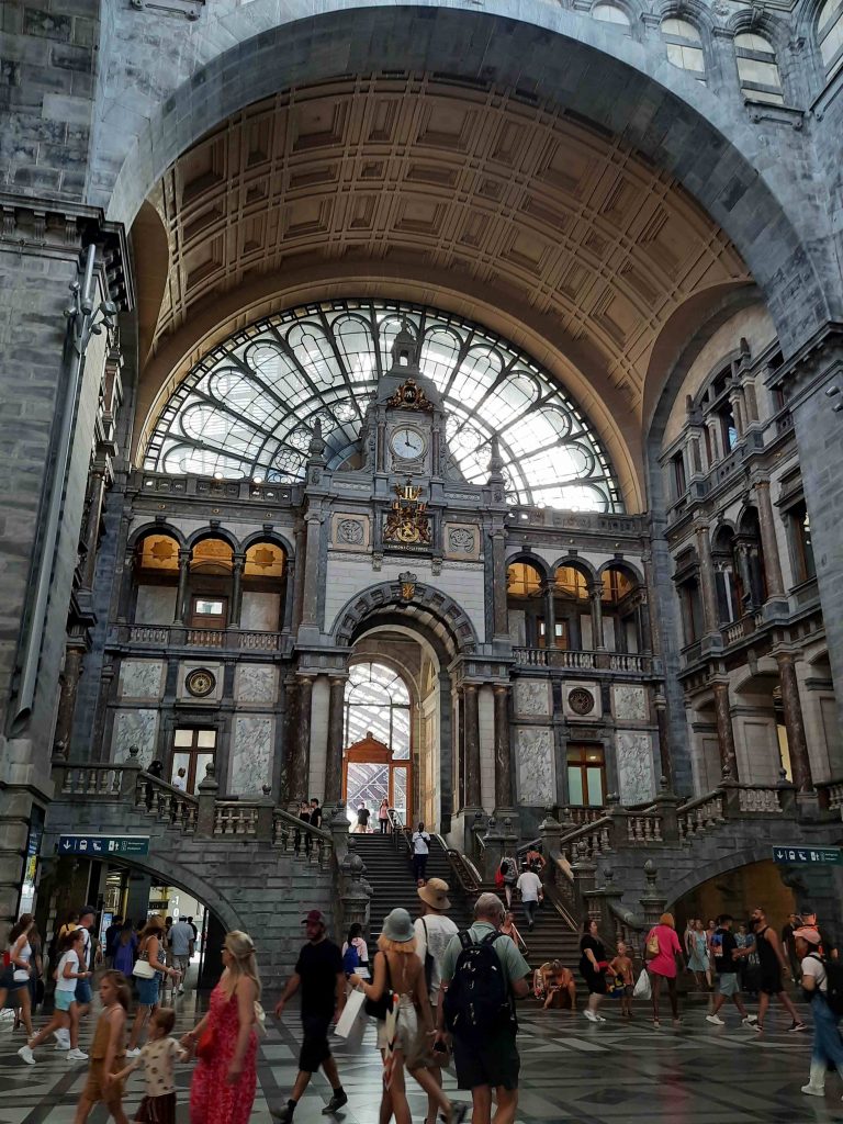 Der Bahnhof in Antwerpen ist allein schon sehenswert. Gegenüber beginnt gleich die kilometerlange Shoppingstraße bis vor zum Hafen.