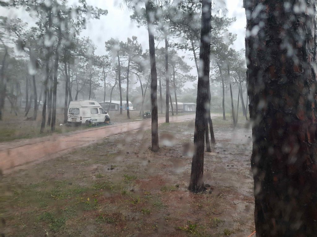 Es hat schon in der Nacht begonnen. Es regnet wieder. Seit Coimbra haben wir ja die letzten 2 Wochen mehr oder weniger Sonnenschein gehabt. Aber jetzt haben wir den Regen der dann in 2-3 Tage über Deutschland sein wird. Also Heizung an und Buch raus.