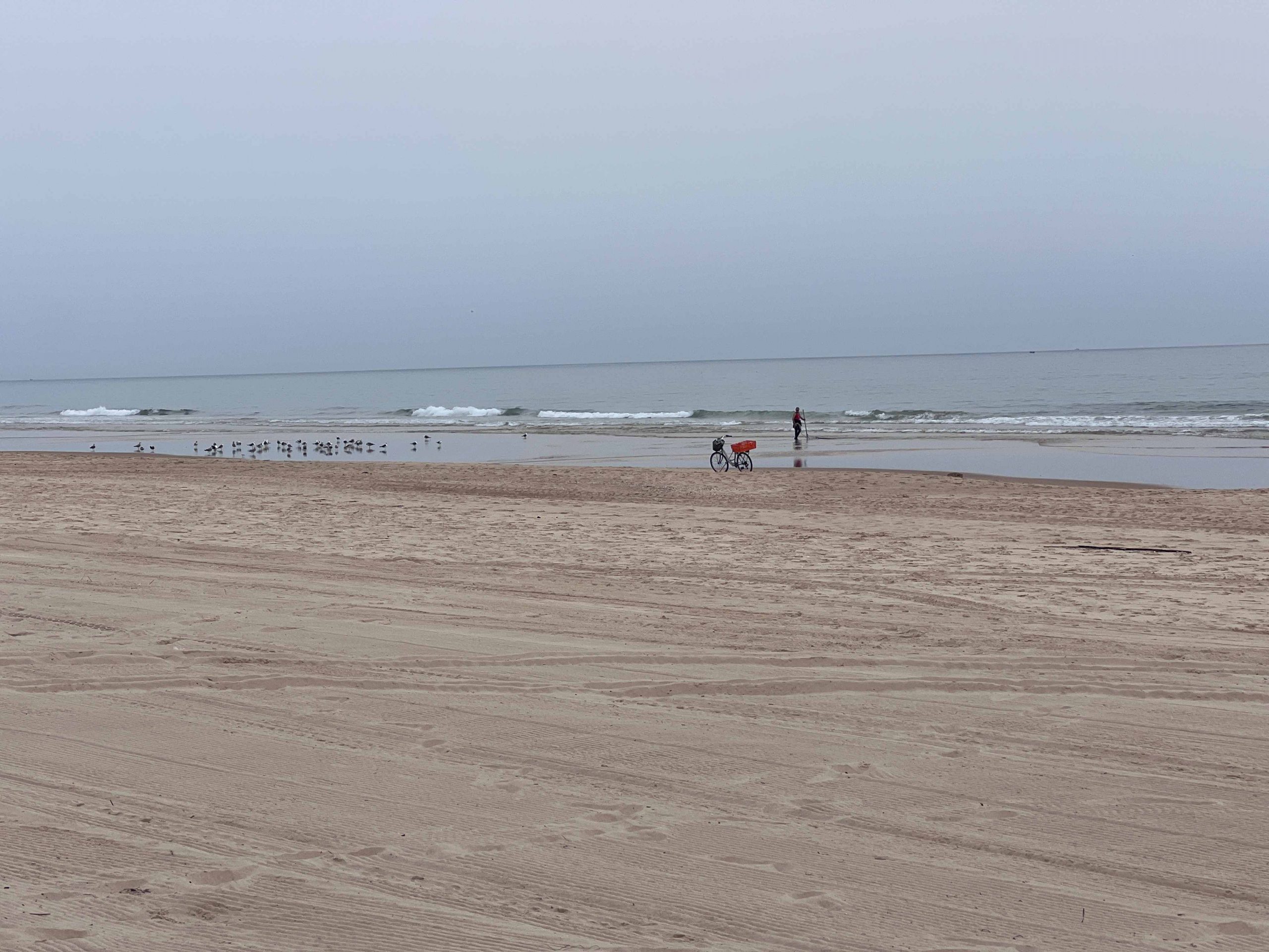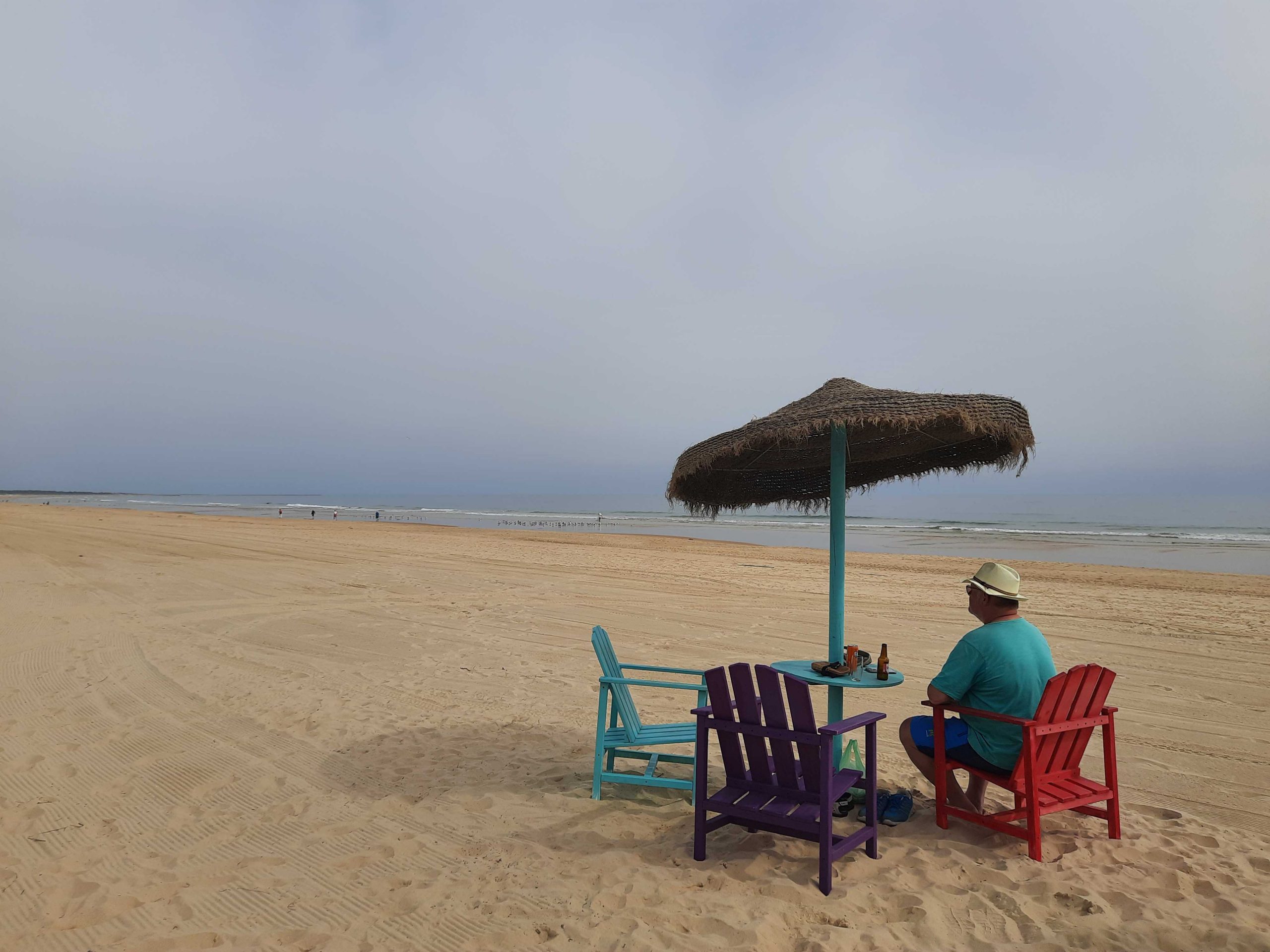 Der Strandspaziergang ging fast bis zum Sem Espinho. Kurz davor gibt es noch eine kleine Bar an der wir einkehrten. Bis wir unsere Getränke hatten lag der Hund bereits neben unseren Stühlen und hatte etwas Blaues im Mund. Der hat einfach eine meiner Socken aus dem Schuh geholt und wollte damit spielen. Erst der Besitzer hat in dazu überreden können mit meine Socke wiederzugeben.
