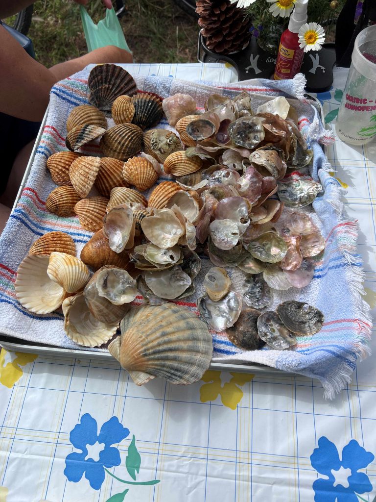 Dieser Strandabschnitt ist voll mit Muscheln und wir können fast nicht mehr aufhören zu sammeln.