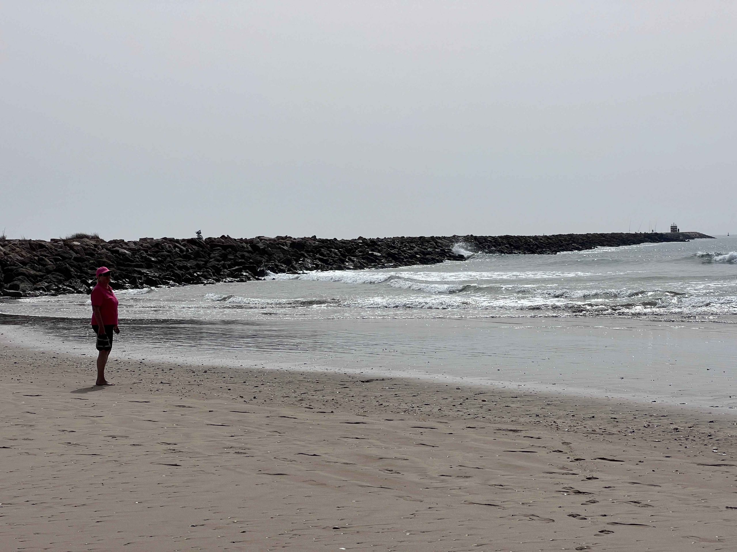 Auch heute machen wir wieder einen langen Spaziergang am Strand. Es geht über den ersten Wellenbrecher hinaus zum südöstlichsten Punkt von Portugal – dem kleinen Leuchtturm Vila Real.