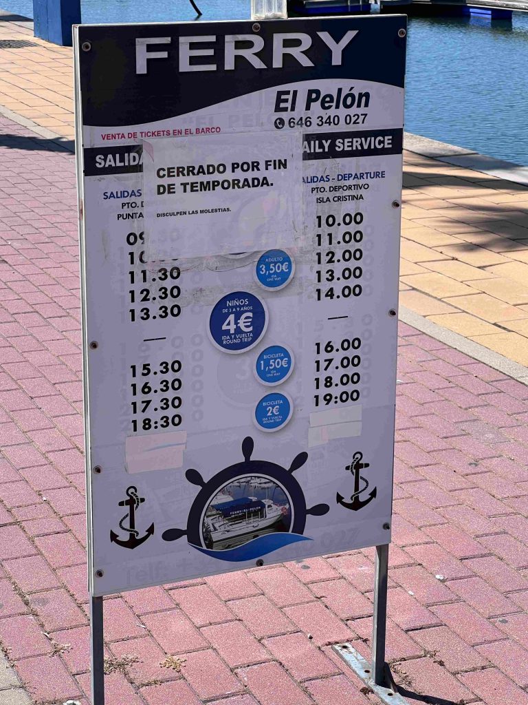 In Isla del Moral wollten wir eigentlich mit einer Fähre nach Isla Christina übersetzen – aber die Fähre hat wohl Ruhetag.