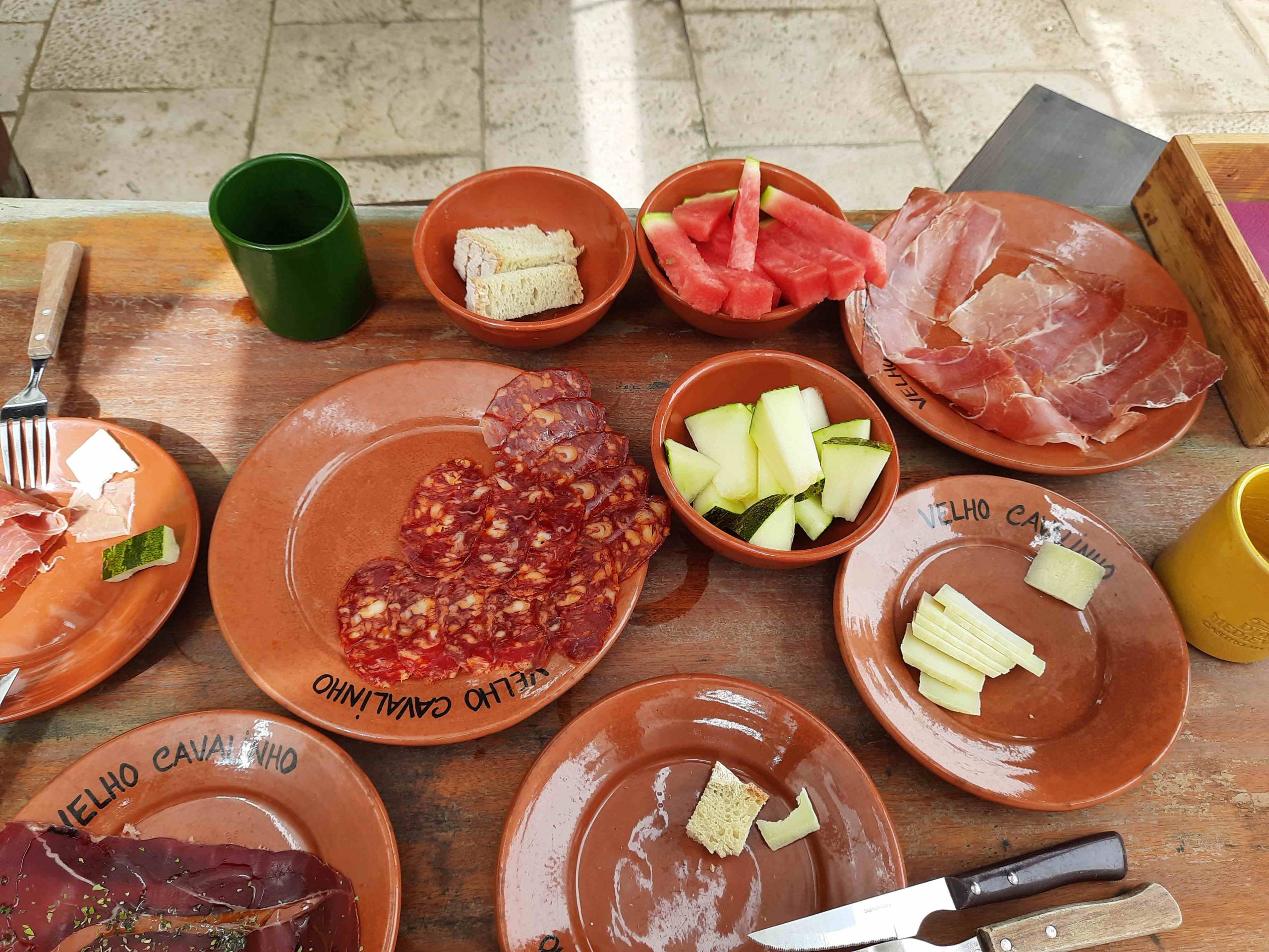 Am Nachmittag machen wir noch die Castro-Marim-Runde – aber diesmal im Uhrzeigersinn. In Castro Marim kehren wir nach nochmal in der Mittelalter-Tratoria ein. Wir waren auch schon im letzten Jahr hier und haben uns bei mittelalterlichen Klängen und Gesänge ( vom Wirt ) die kleinen Dinge schmecken lassen.
