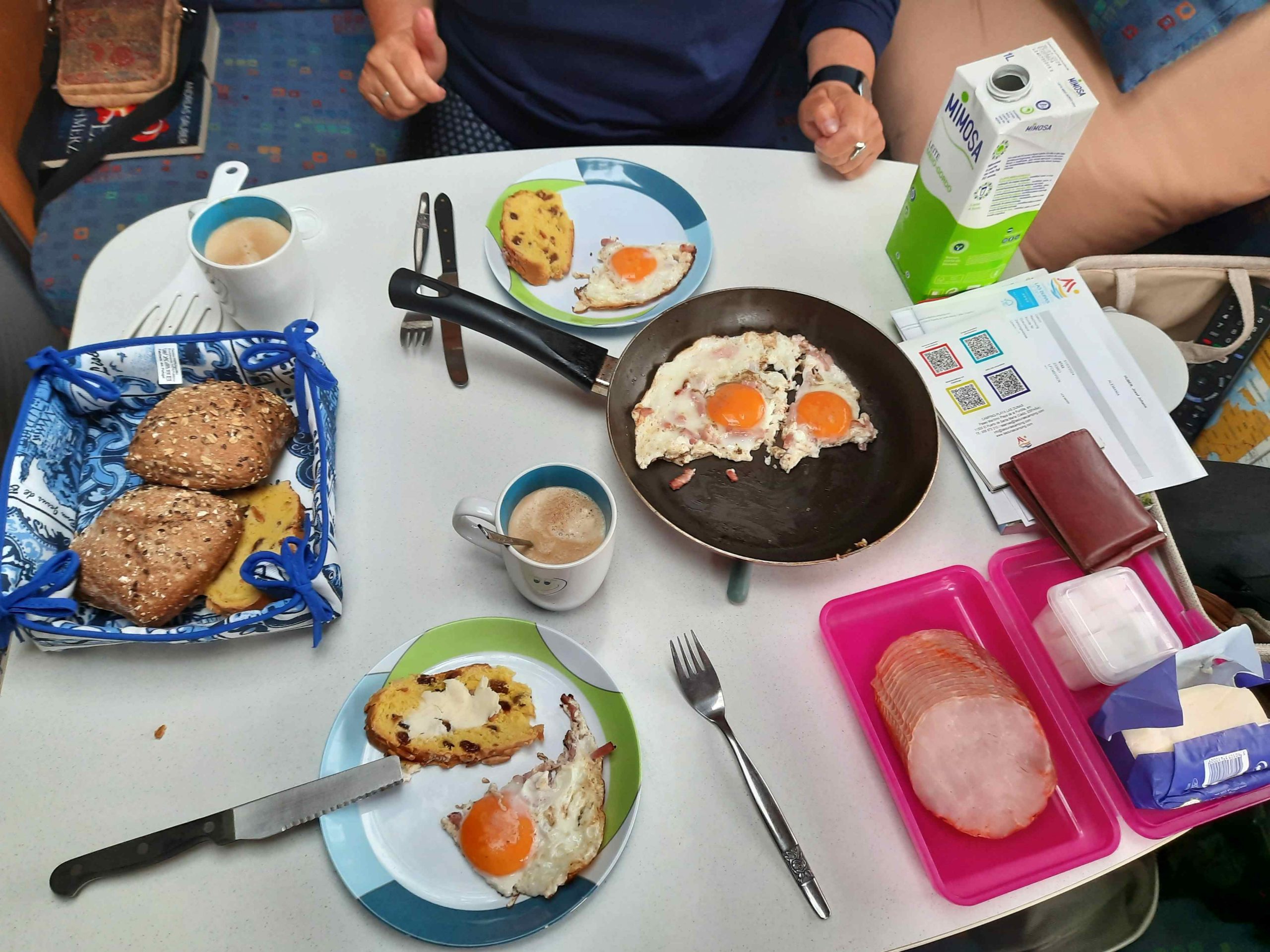 Nachdem wir unseren Platz haben gibt es erst mal ein verspätetes Osterfrühstück. Dann wartn wir ob der Regen aufhört oder nicht. Nachdem von gestern auf heute auch noch die Zeitumstellng auf Sommerzeit war müßen wir unser Uhren um 2 Stunden vorstellen- fällt nicht so leicht.