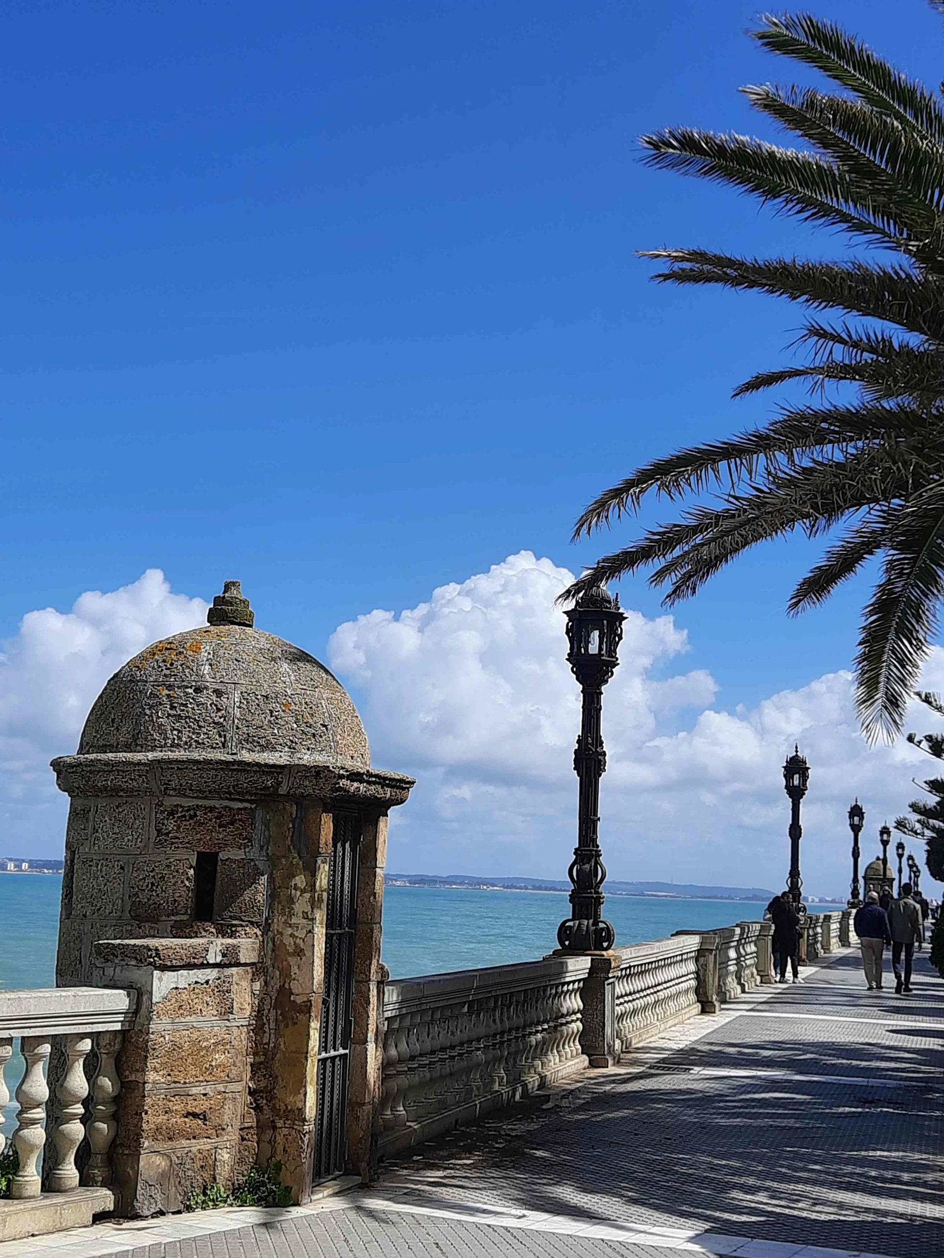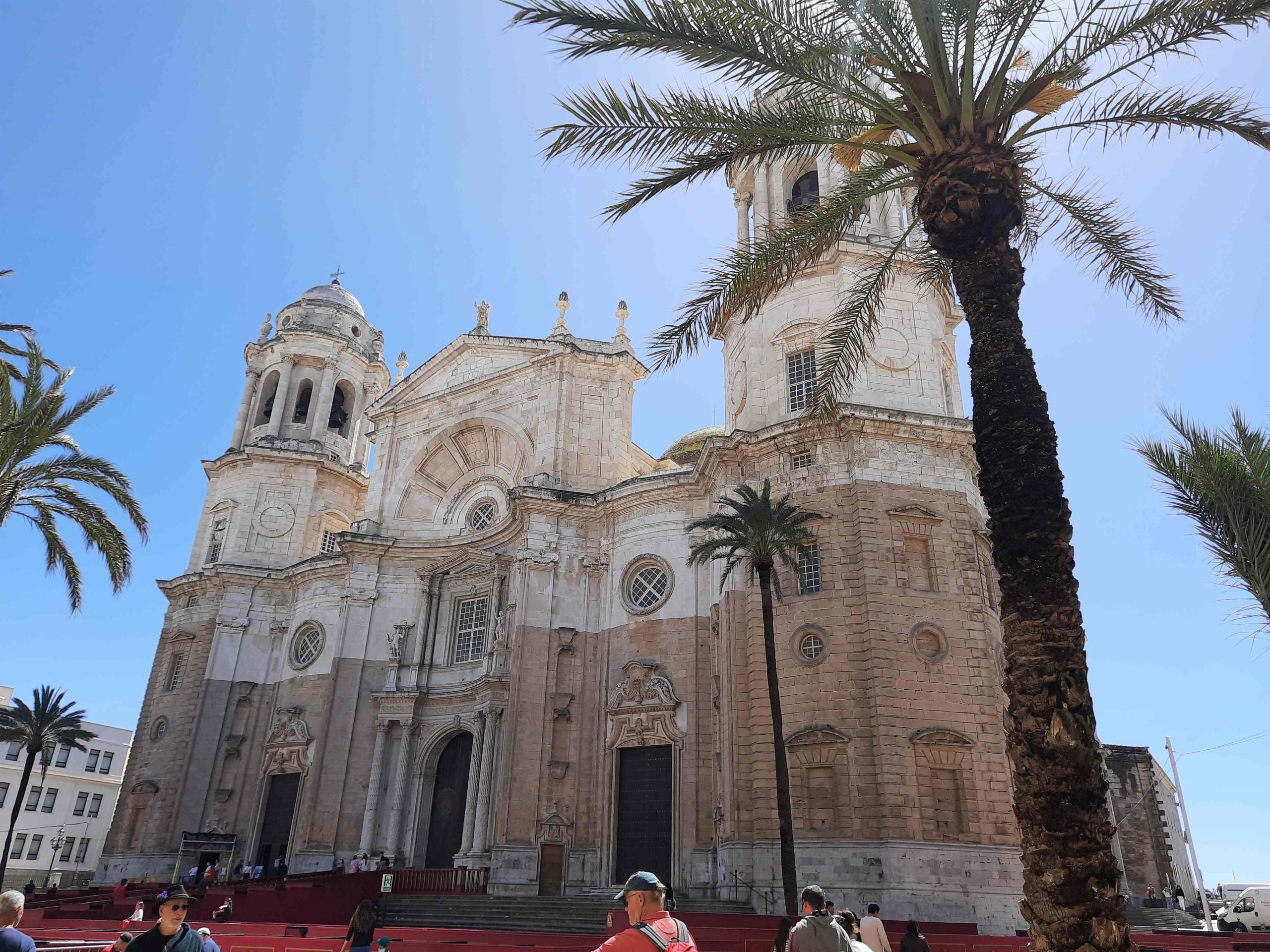 In Cadiz machen wir einen Rundgang, schauen uns Plätze, Kirchen und alte Festungen an und sitzen uns in die Sonne vor der Cathedrale.