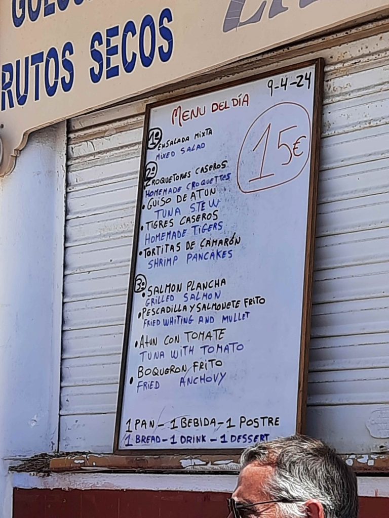 Zurück sind wir in Isla Plana in der „Freiduría Pescadería Isla Plana“ eingekehrt. 15 Euro für das Tagesmenü mit Getränk und Nachspeise ( Milchreis auf Spanisch – lecker ) und einen tollen Lachs – sehr gut. Da gehen wir nochmals hin.