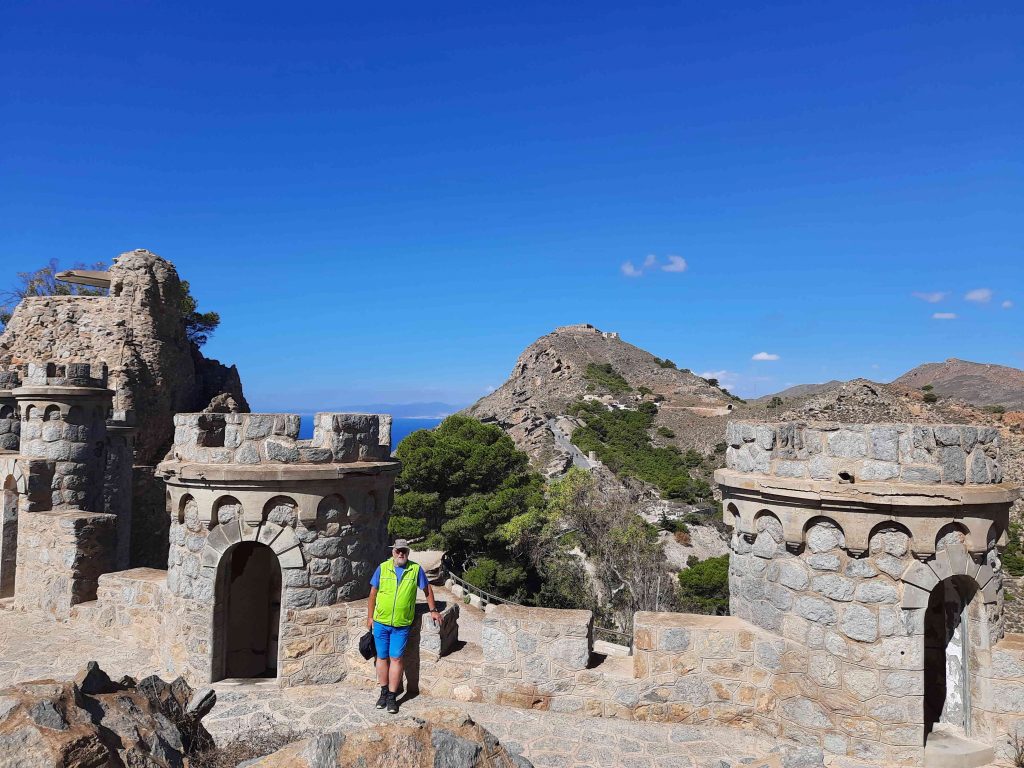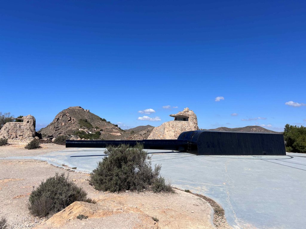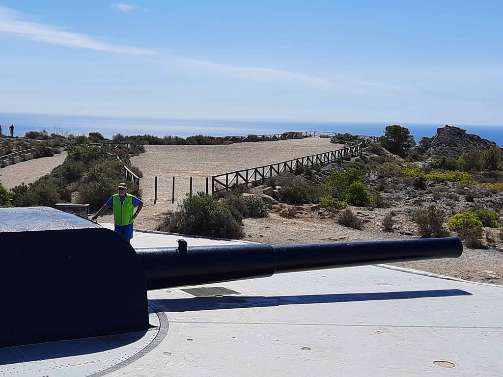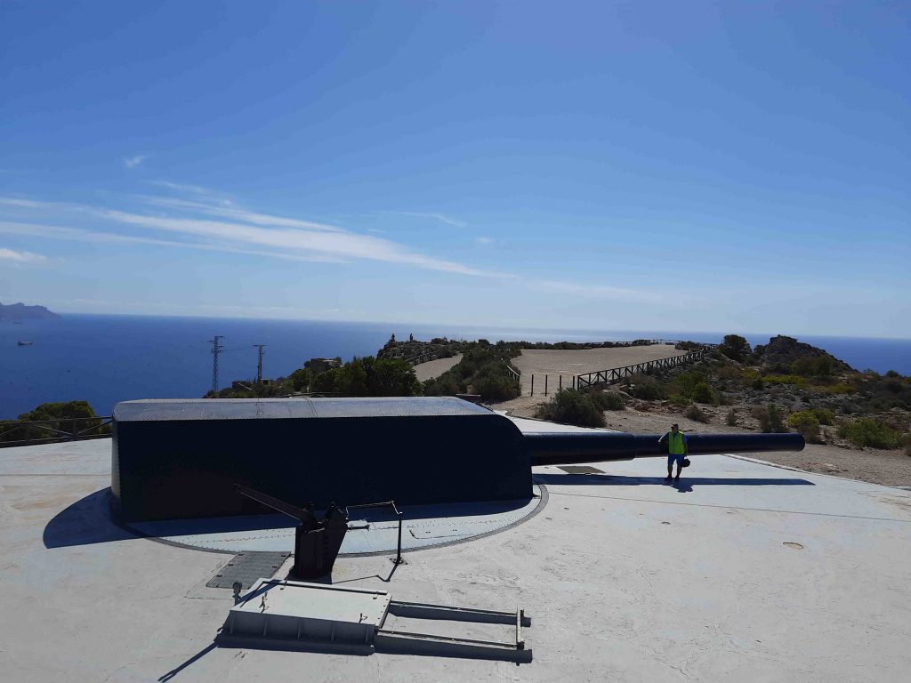 Zurück – 500 m Bergab – zur Abzweigung geht es weiter zu den Batterien die dort in den 1930-ger Jahre erbaut wurden. Auf dem Wege dorthin haben wir immer wieder einen tollen Ausblick – besonders nach links hin auf Cartagena .