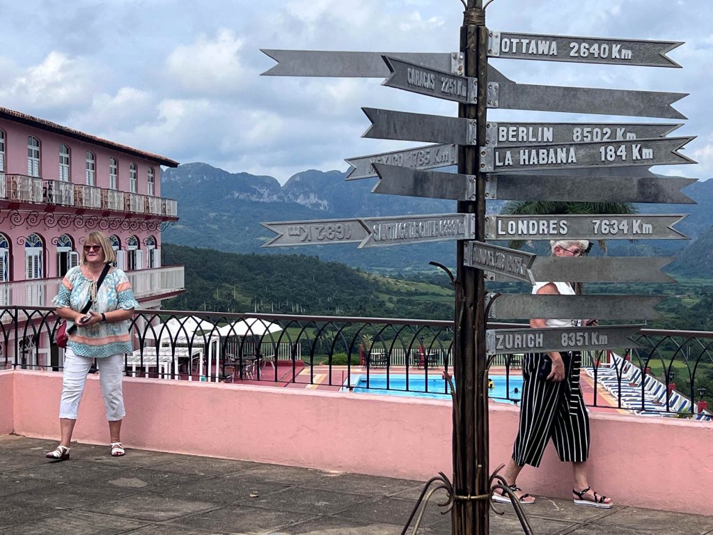 Erster Halt ist am Hotel Hotel Horizontes Los Jazmines. Von der Terrasse hat man den besten Ausblick auf das Vinales Tal.