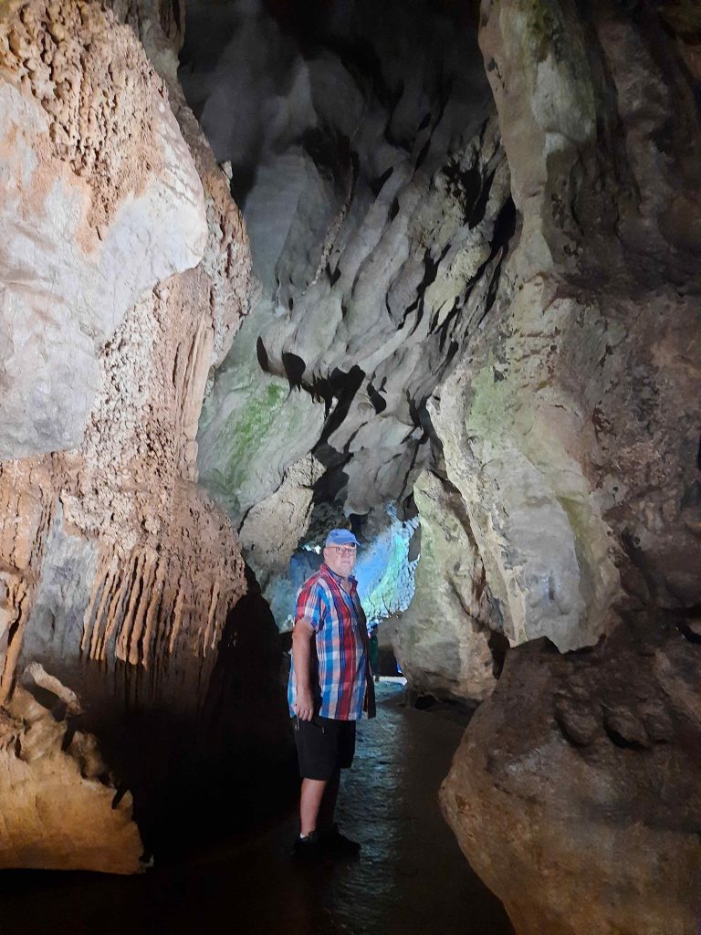 In diese muss man zuerst in eine Art Tropfsteinhöhle gehen und danach wird man mit einem Boot zum Ausgang gebracht. Die Höhle ist eigentlich beleuchtet wenn nicht dem Generator der Diesel ausgeht. Plötzlich war es stockdunkel. Zum Glück hat jedes Handy eine Taschenlampe.