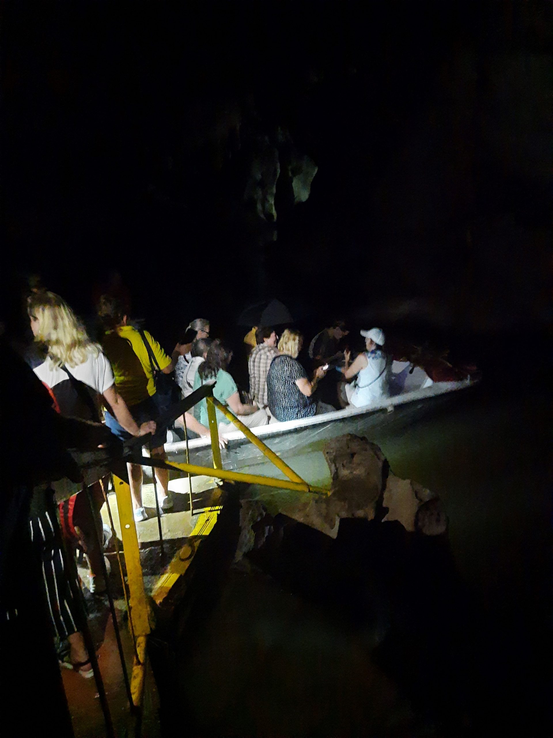 In diese muss man zuerst in eine Art Tropfsteinhöhle gehen und danach wird man mit einem Boot zum Ausgang gebracht. Die Höhle ist eigentlich beleuchtet wenn nicht dem Generator der Diesel ausgeht. Plötzlich war es stockdunkel. Zum Glück hat jedes Handy eine Taschenlampe.