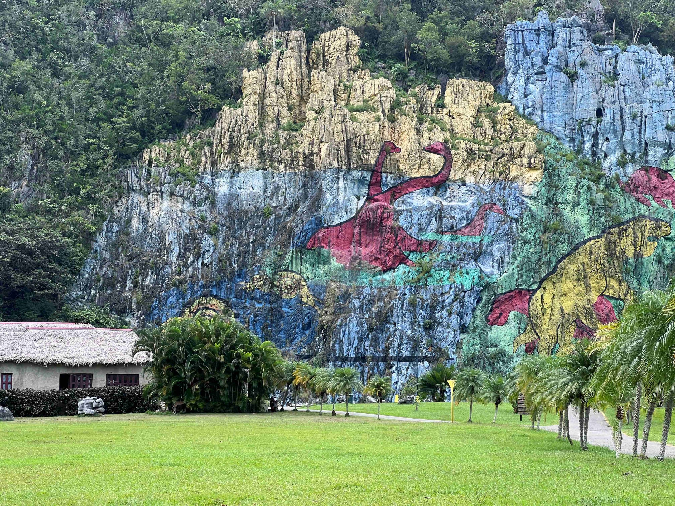 Zum Mittagessen ging es ins Restaurant „Mural de la Prehistoria“. Hier befindet sich das riesige Gemälde am Felsen.