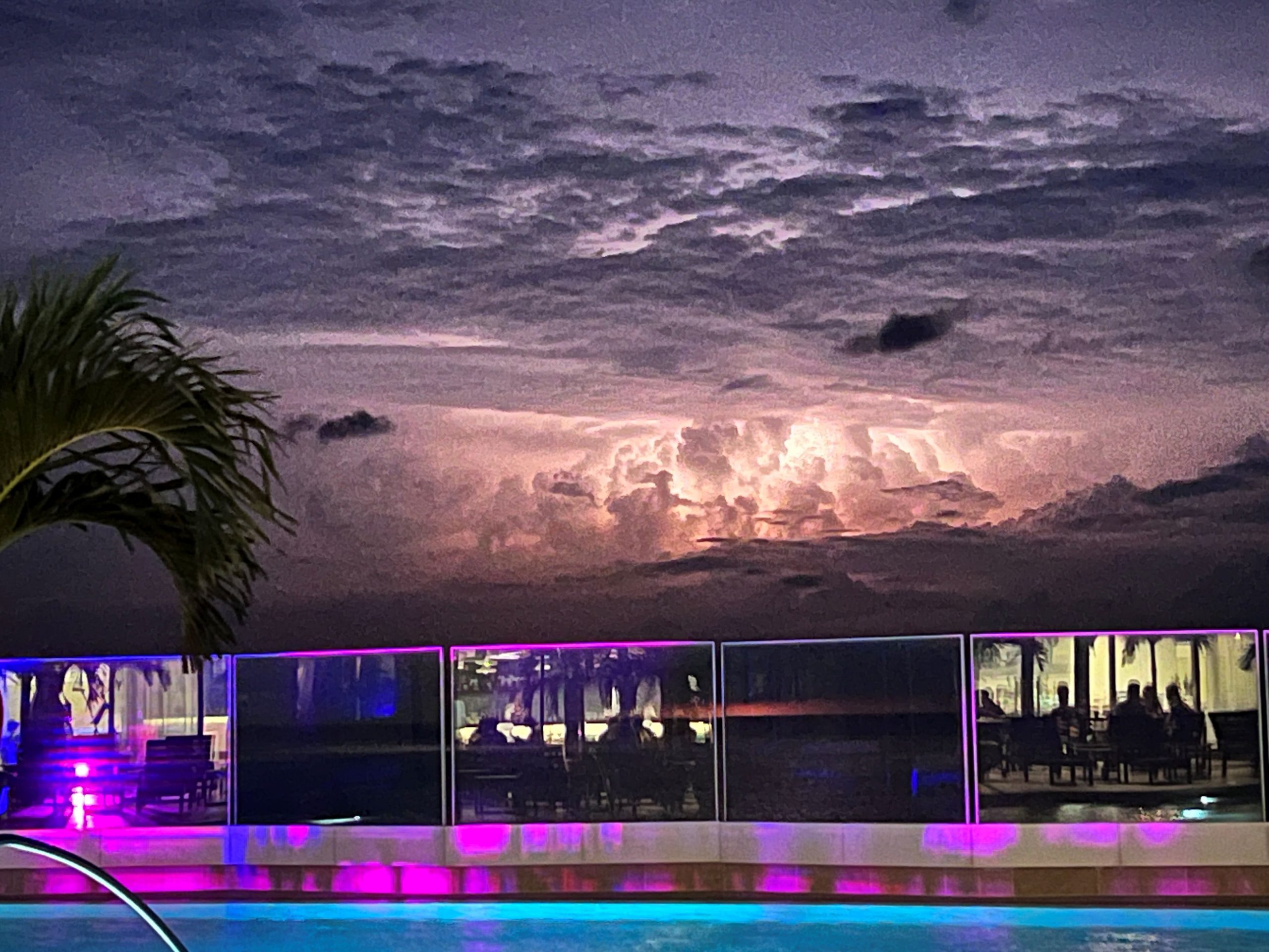 Es war dann schon halb sieben bis wir wieder zurück im Hotel waren. Abends gabs noch Livemusik an der Poolbar und mit Blick auf ein Gewitter über dem Meer.
