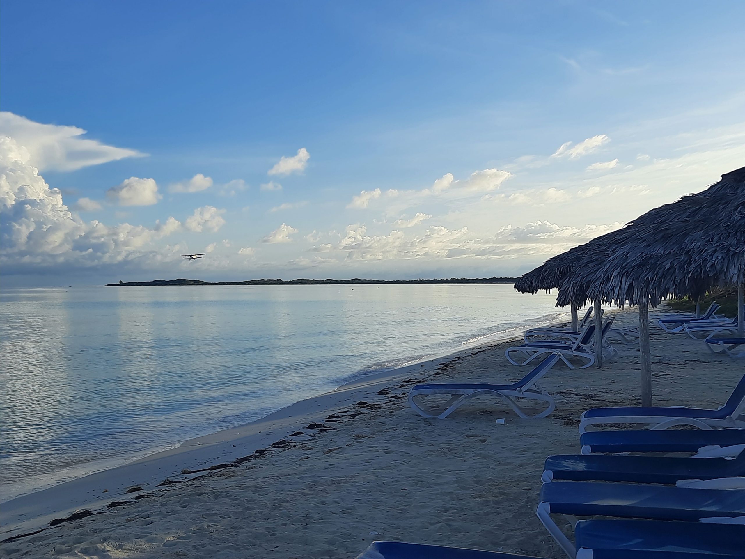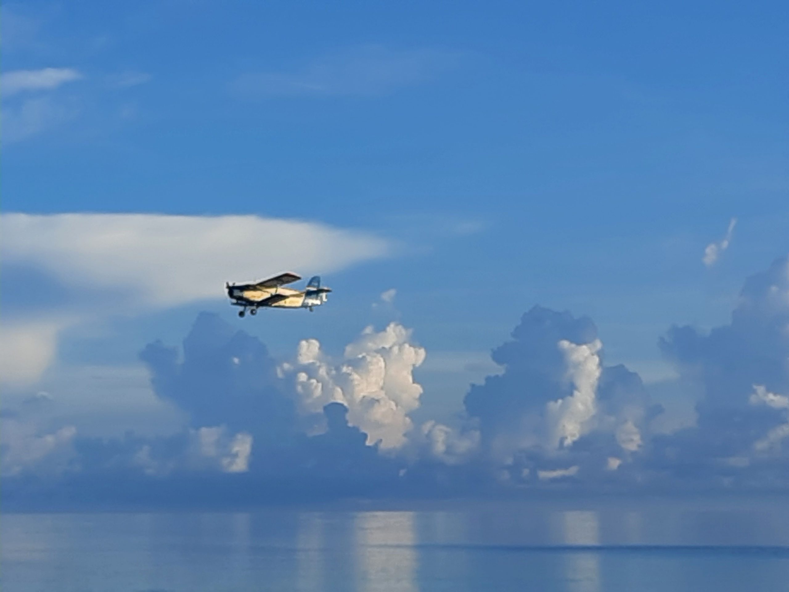 Nach einem späten Frühstück sind wir dann an den Strand gegangen. Dabei haben wir den Flieger gesehen der jeden Tag über die Inseln fliegt und die Mosquitos bekämpft.