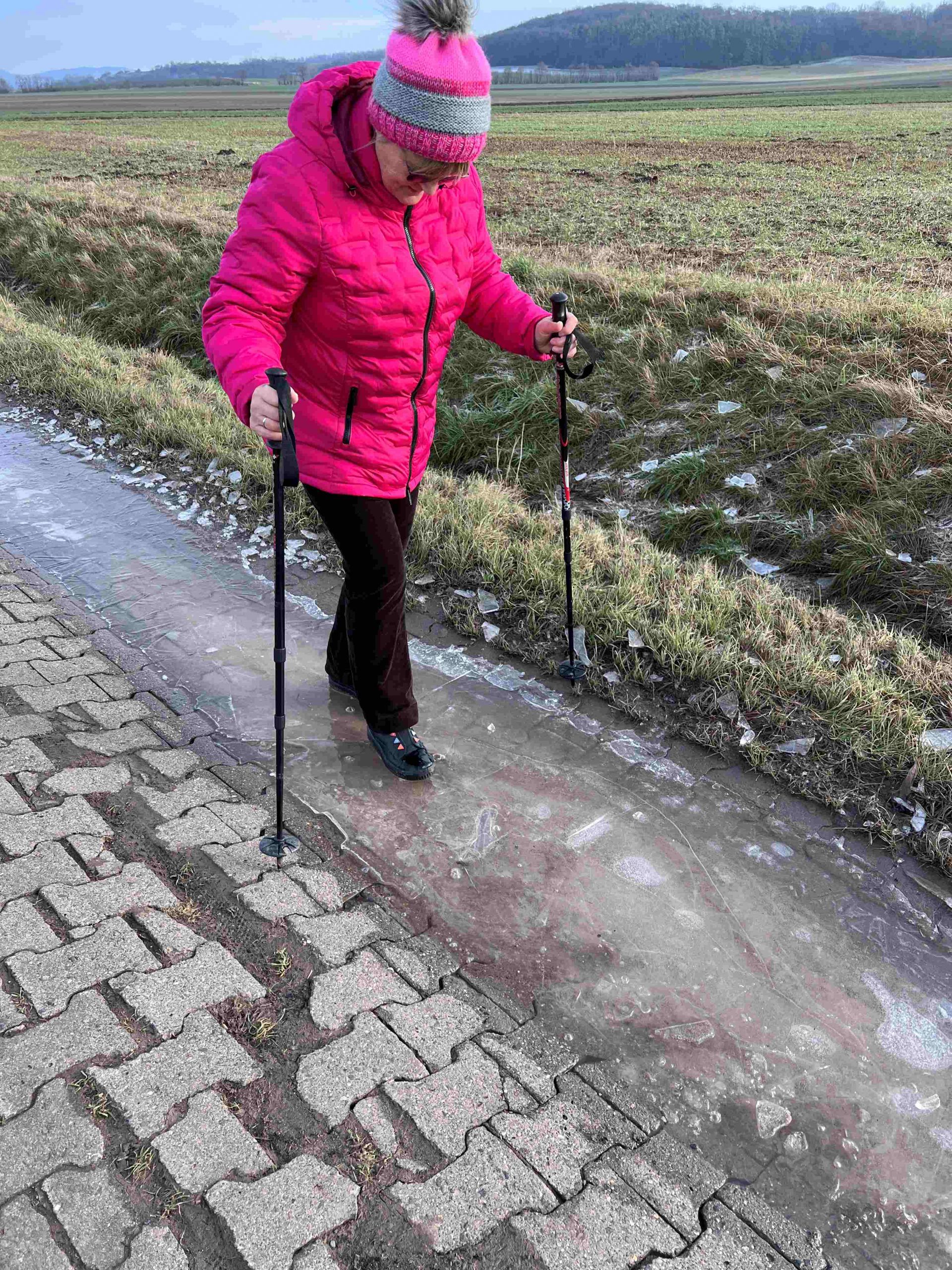 Wir sind ins neue Jahr mit einen kleinen Walking-Rounde gestartet. Ziel war das Berghaeuschen. Unterwegs haben wir die kleinen Eispfützen eingetreten.