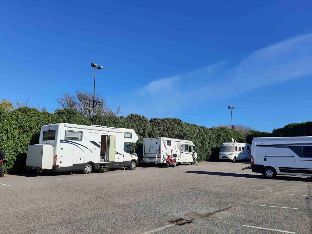 Der ausgewählte Stellplatz gehört auch zur Camping-Car Park – Gruppe. Leider funktioniert hier das einchecken nicht so reibungslos weil der Automat defekt ist. Aber über die App gibt es eine deutschsprachige Hilfe. Die öffnet und dann die Schranke und wir können reinfahren.