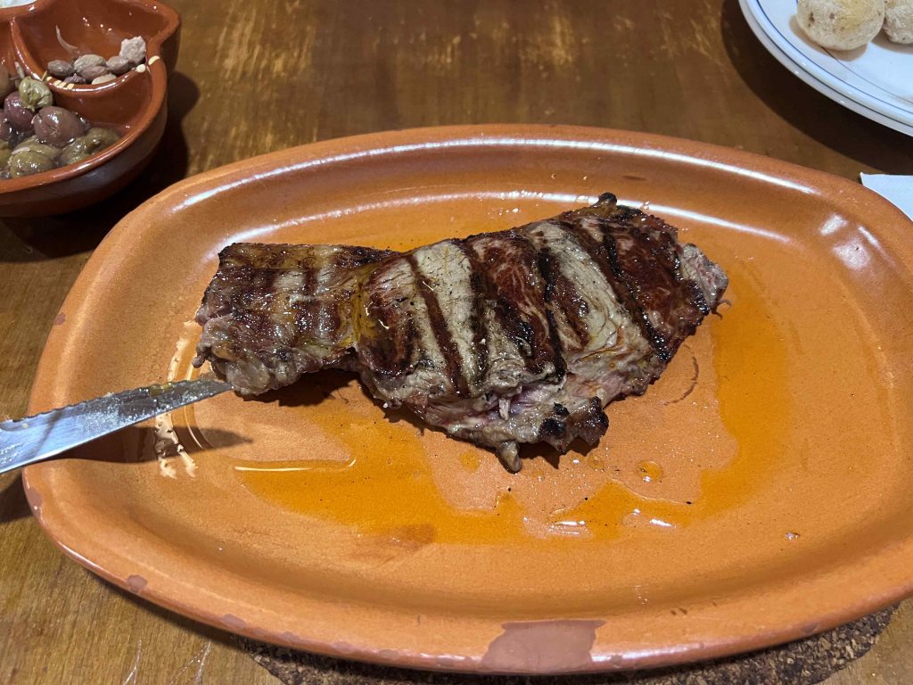 Als um 20:00 Uhr die Rollos aber immer noch unten waren sind wir doch los und haben von der Rückseite mal reingeschauft – und: geöffnet. Pünktlich um 20:00. Und das Essen war sehr gut.