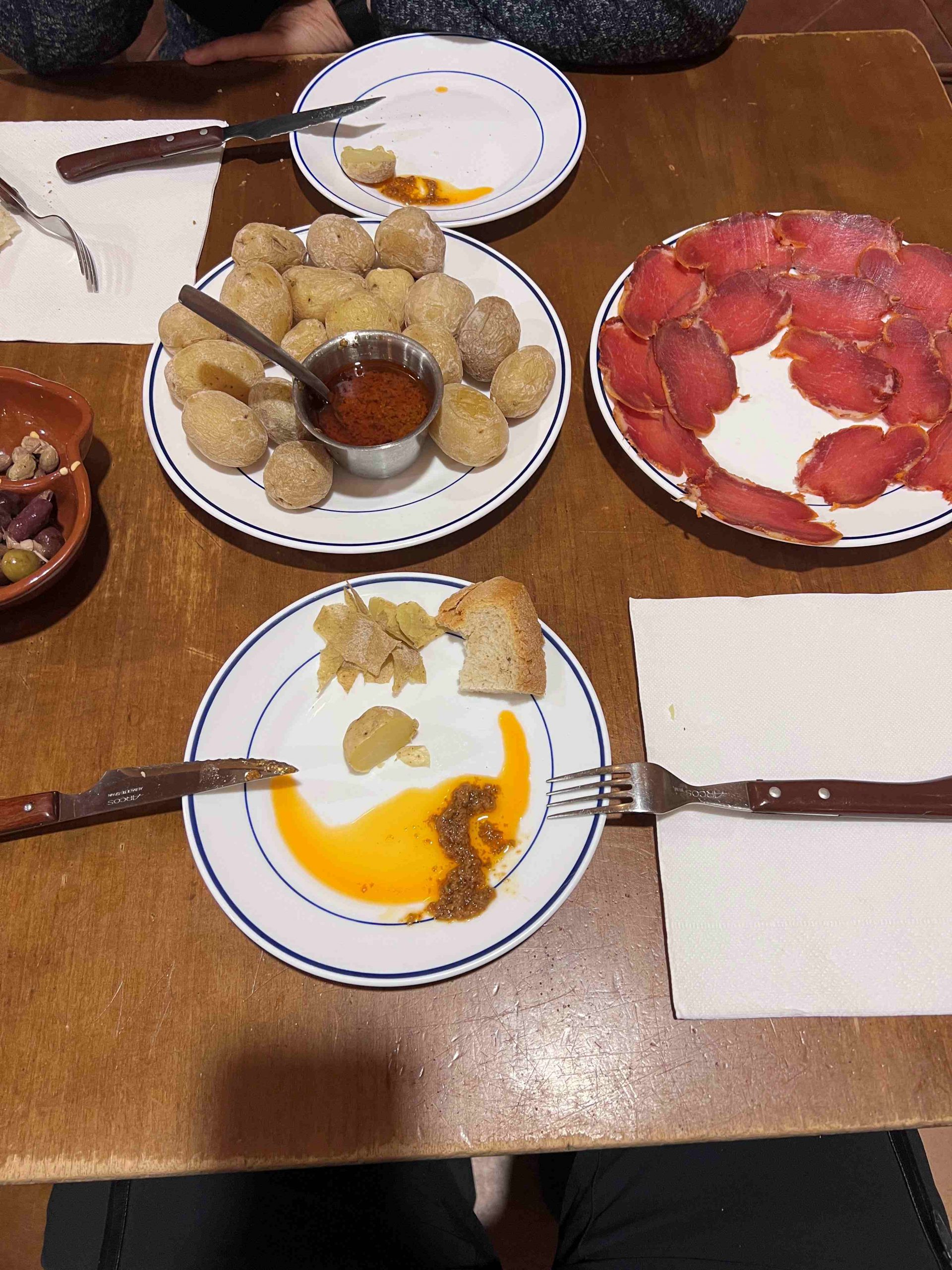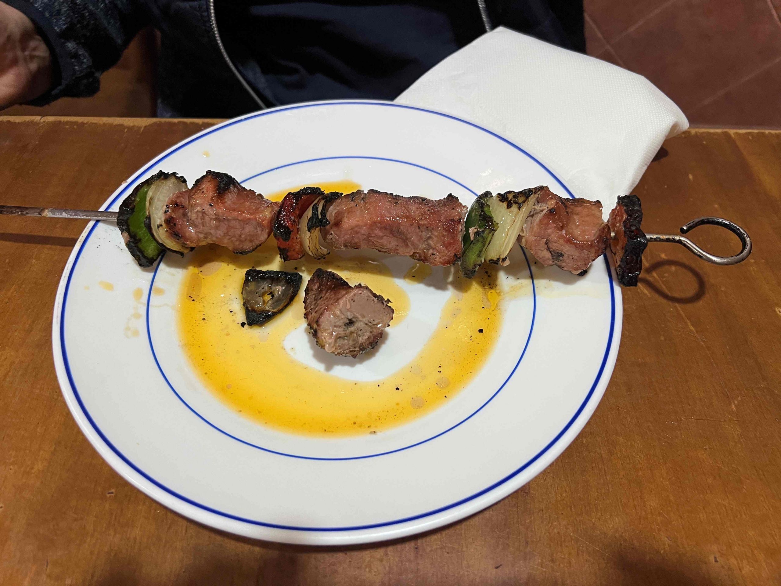 Als um 20:00 Uhr die Rollos aber immer noch unten waren sind wir doch los und haben von der Rückseite mal reingeschauft – und: geöffnet. Pünktlich um 20:00. Und das Essen war sehr gut.