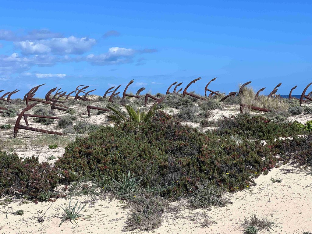 Als Attraktion gibt es hier einen Anker-Friedhof. Hier sind hunderte Anker halb im Sand