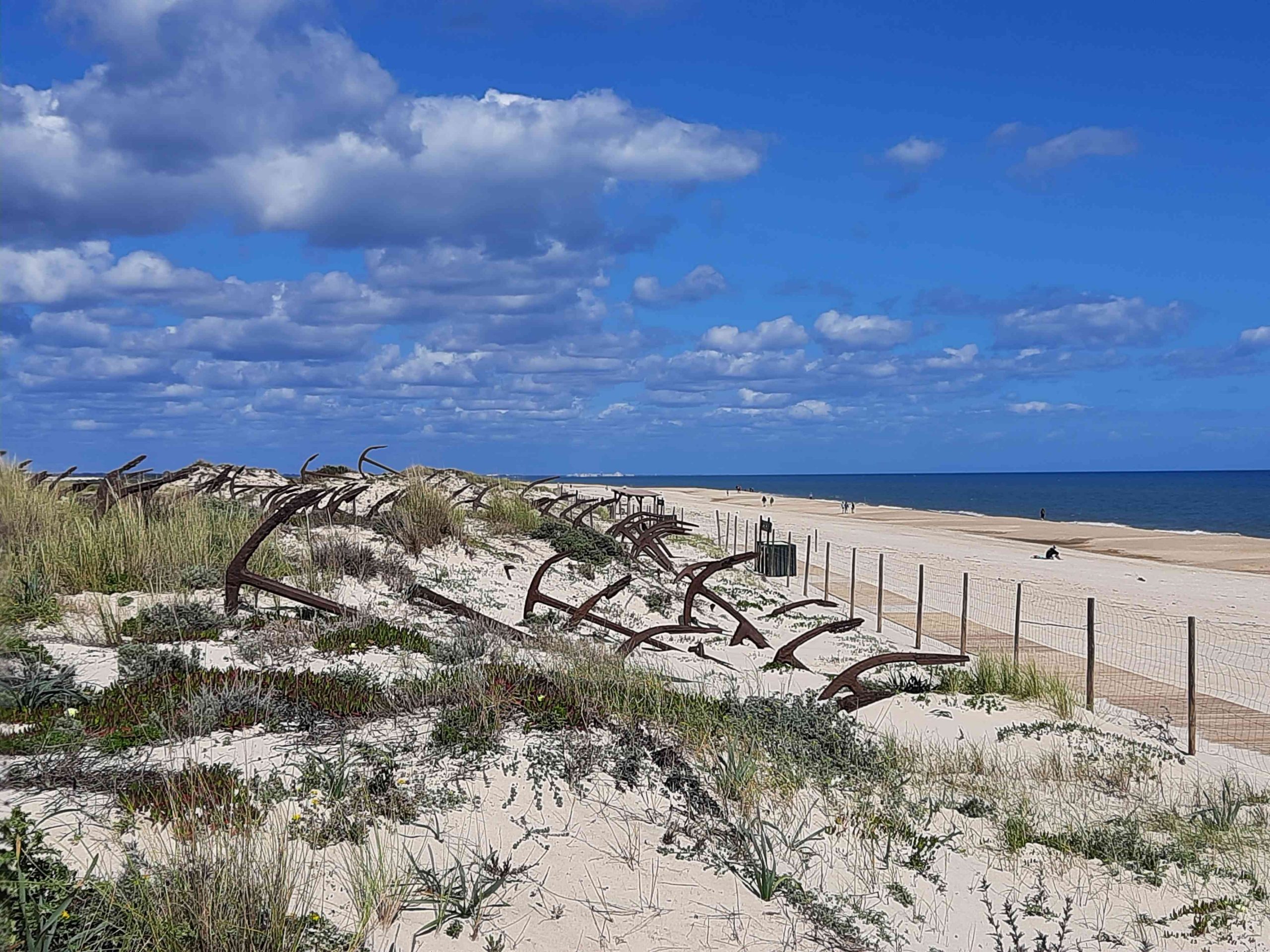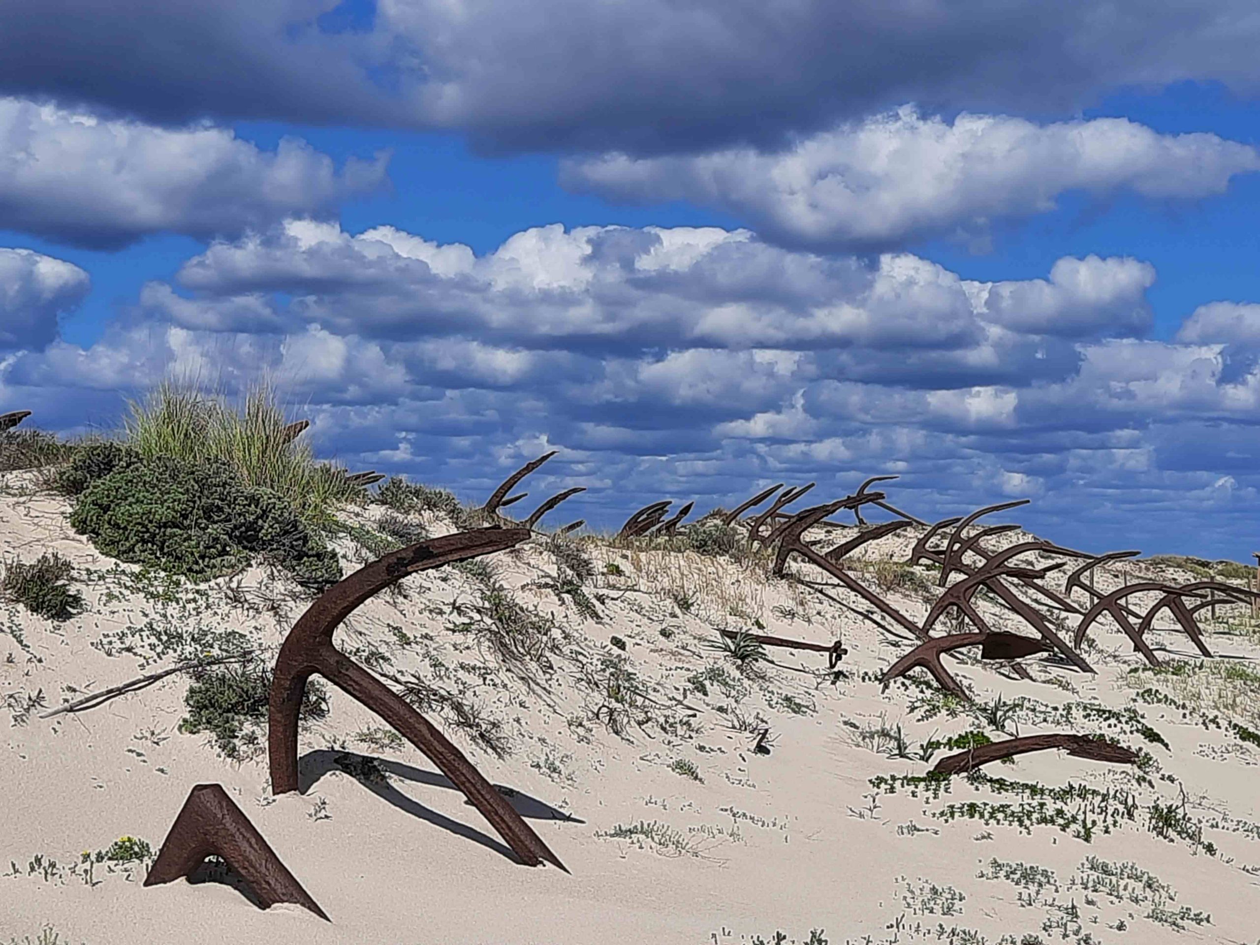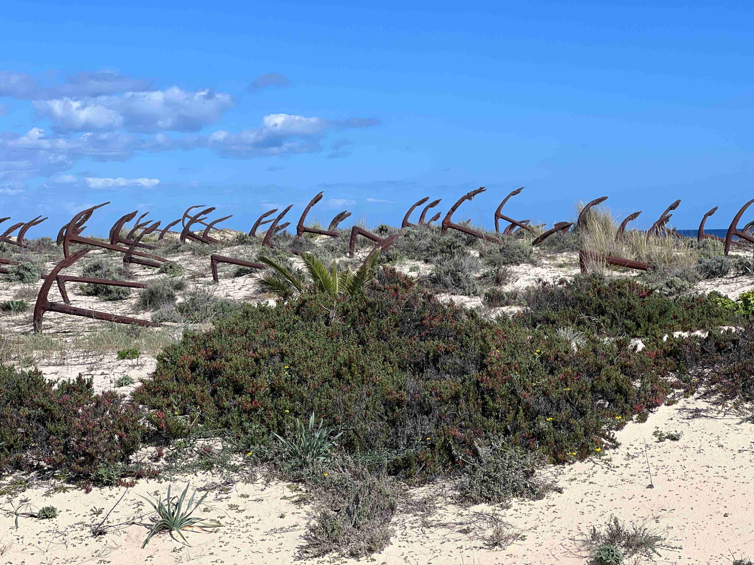 Als Attraktion gibt es hier einen Anker-Friedhof. Hier sind hunderte Anker halb im Sand